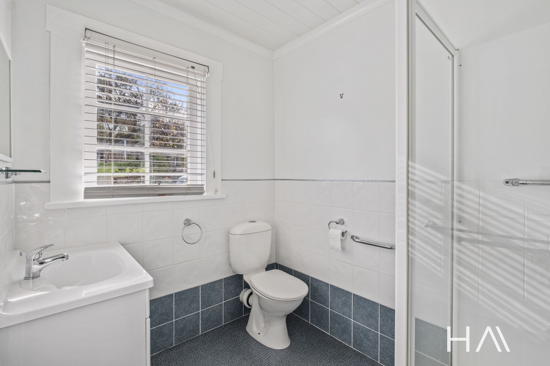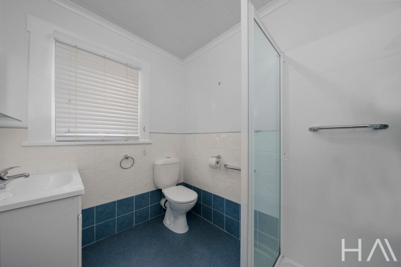 - The downstairs bathroom comprises a toilet, shower and vanity.