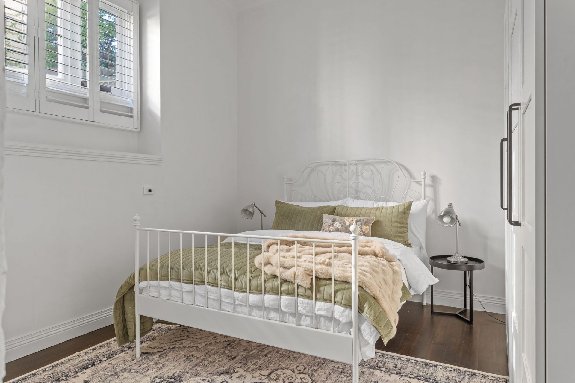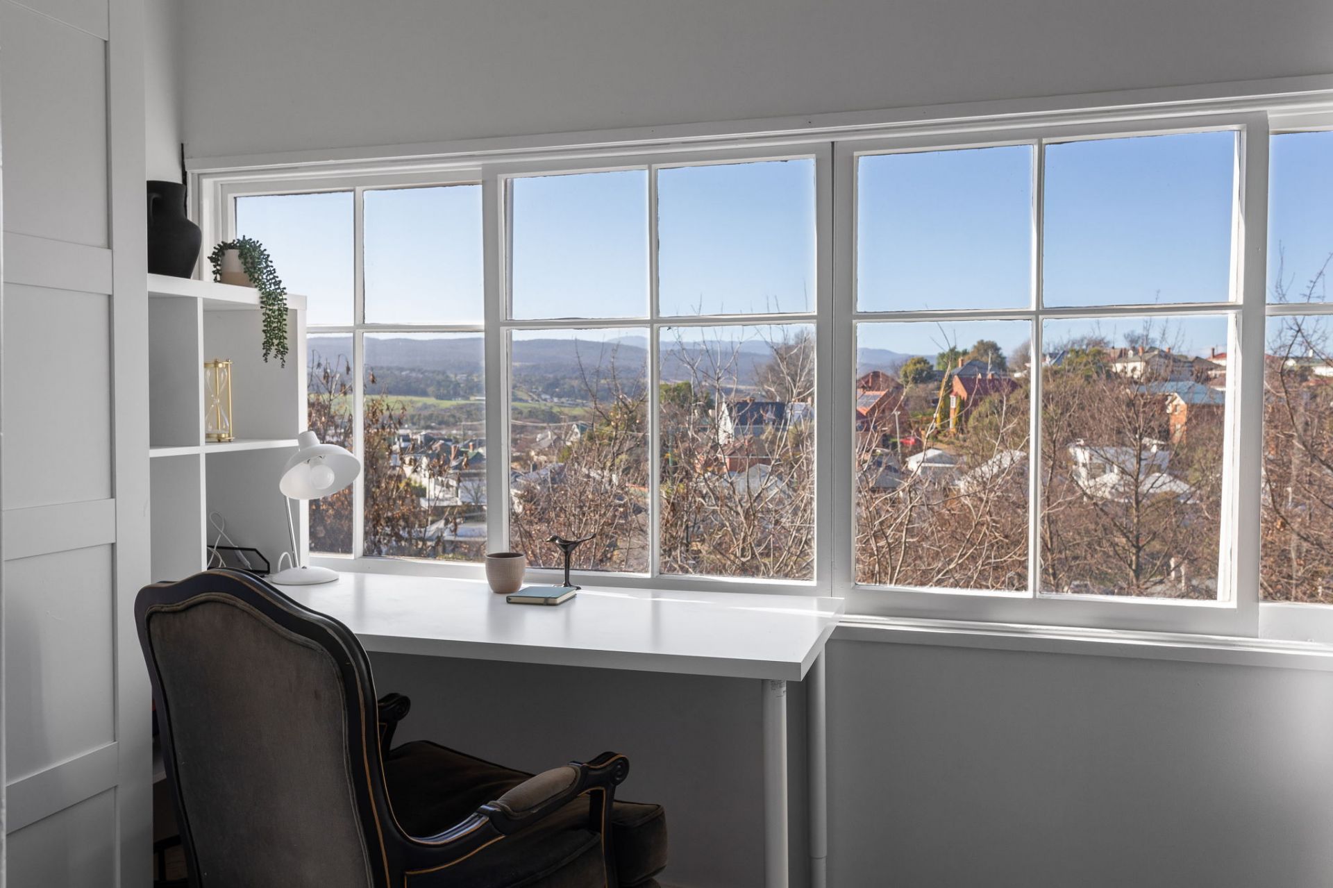 Spanning two levels, the home includes three generous bedrooms, two bathrooms and two living areas. Upstairs, the formal lounge showcases decorative cornices, high ceilings and a feature fireplace. A dedicated workstation with district views provides a light-filled space ideal for remote work. The main bathroom is also located on this floor, finished in a simple and elegant style.