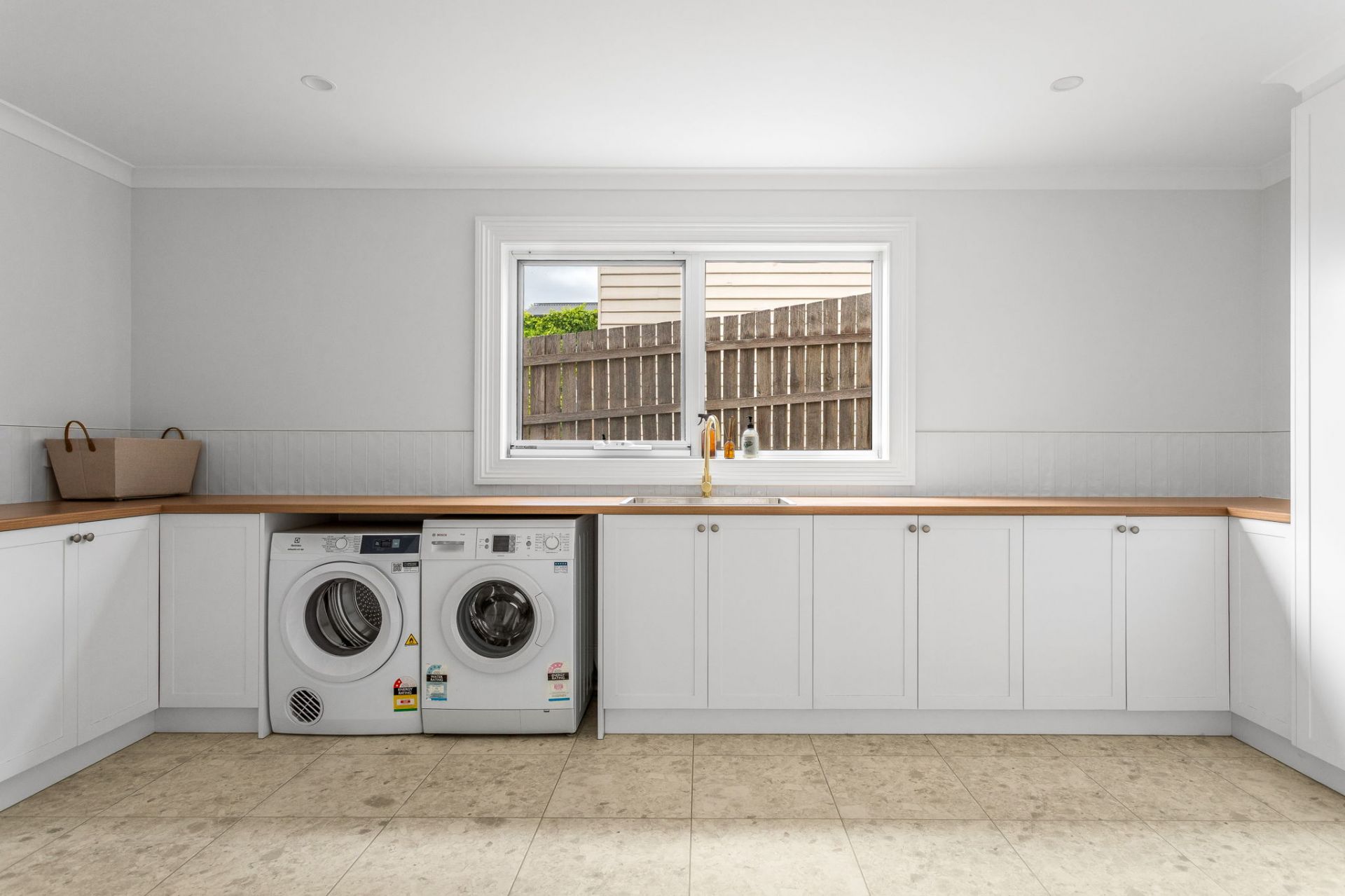 - Spacious laundry with abundant storage and bench space, washing machine & dryer included
