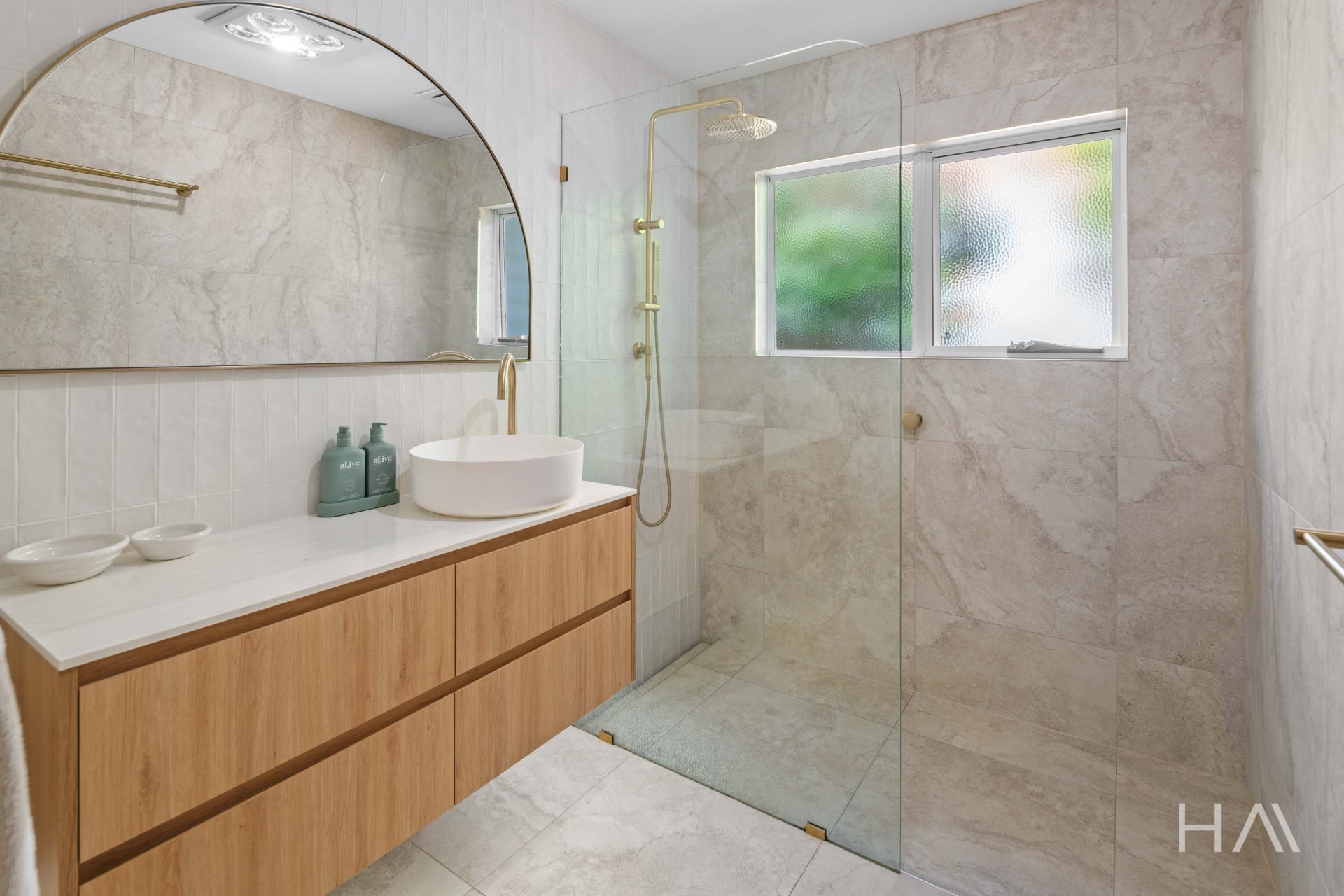 - Sleek, updated bathroom with walk in shower