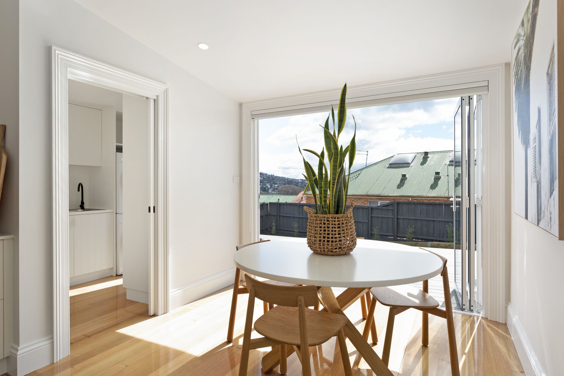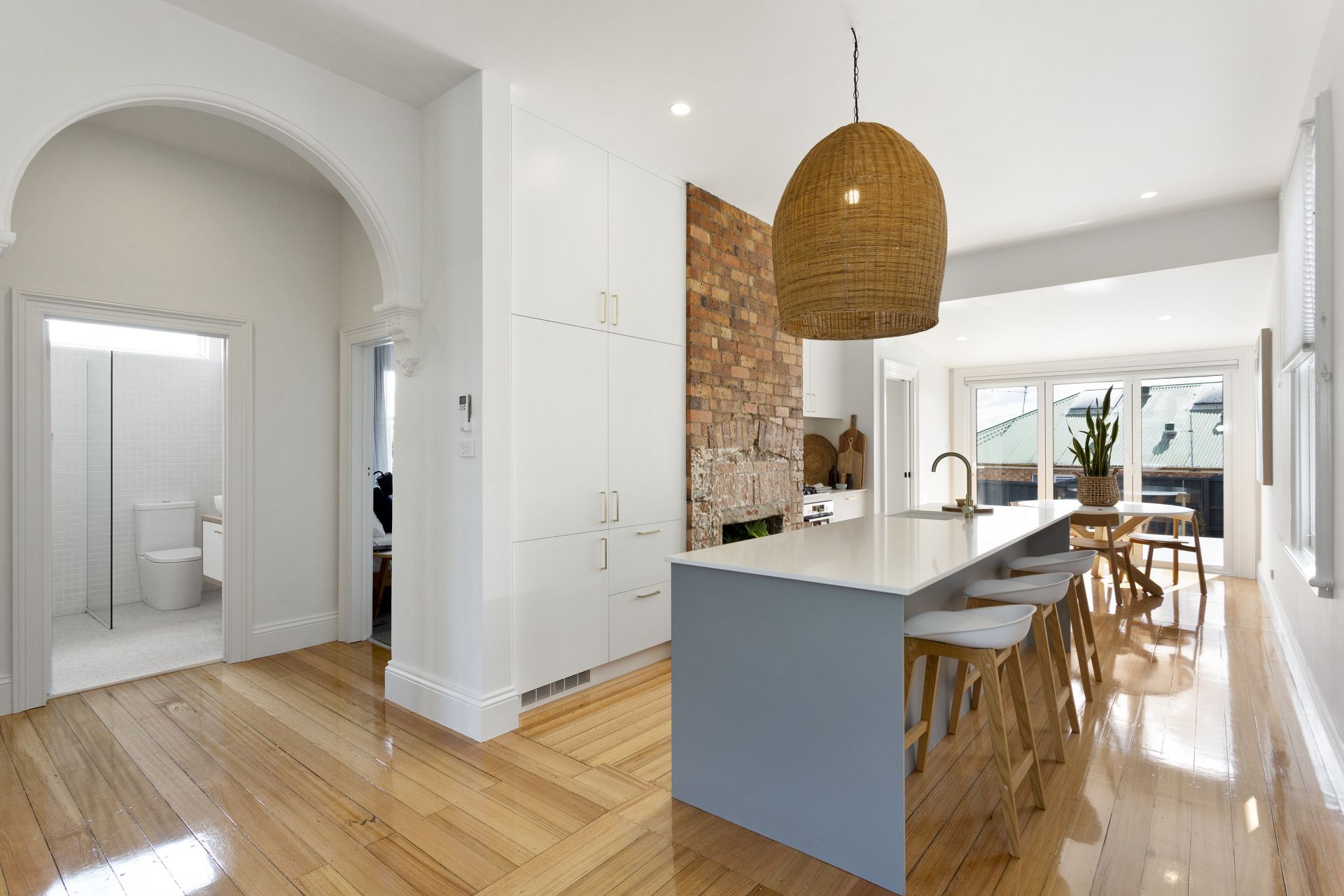 While retaining its original charm and features, the home showcases stylish modern textures and quality finishes that truly set it apart. Step inside to a light-filled open-plan living area with neutral tones, creating a welcoming and relaxed atmosphere. The well-appointed kitchen includes modern appliances and ample storage, flowing effortlessly into the dining and lounge areas—ideal for entertaining or unwinding in style.