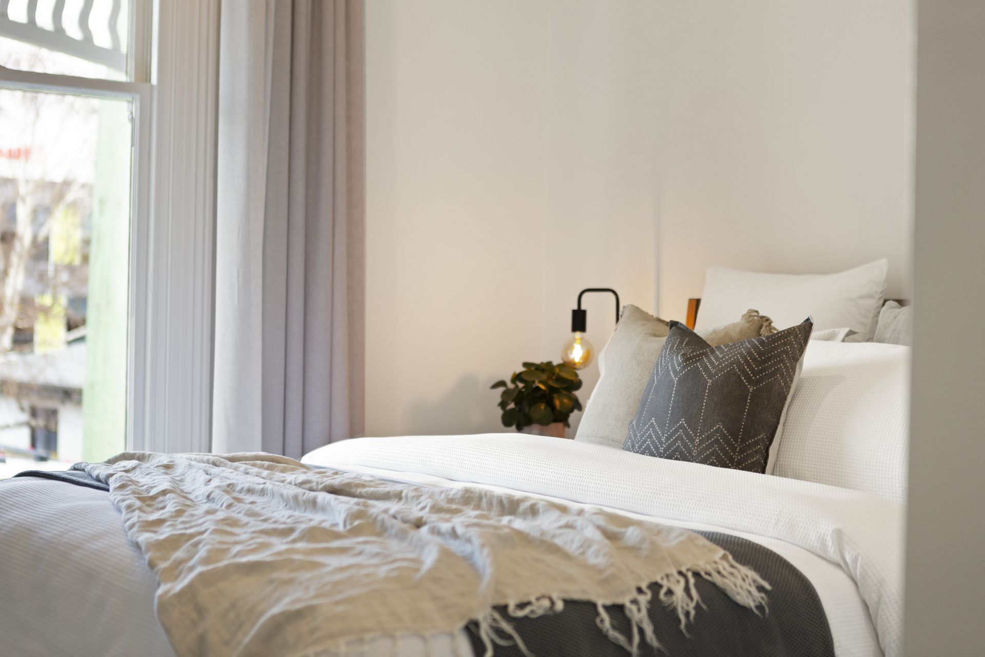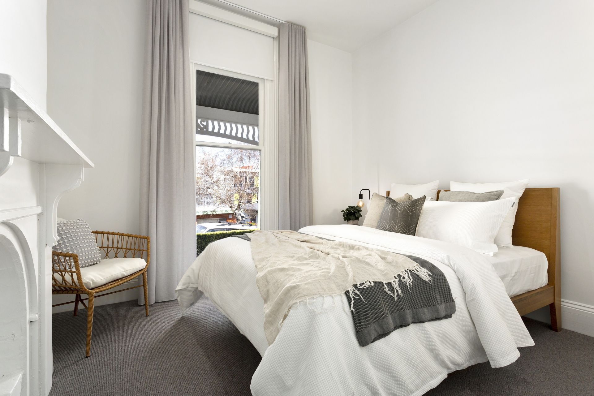 • Polished timber floorboards throughout the living areas are complemented by soft wool carpets in the bedrooms, adding warmth and texture to the interiors.