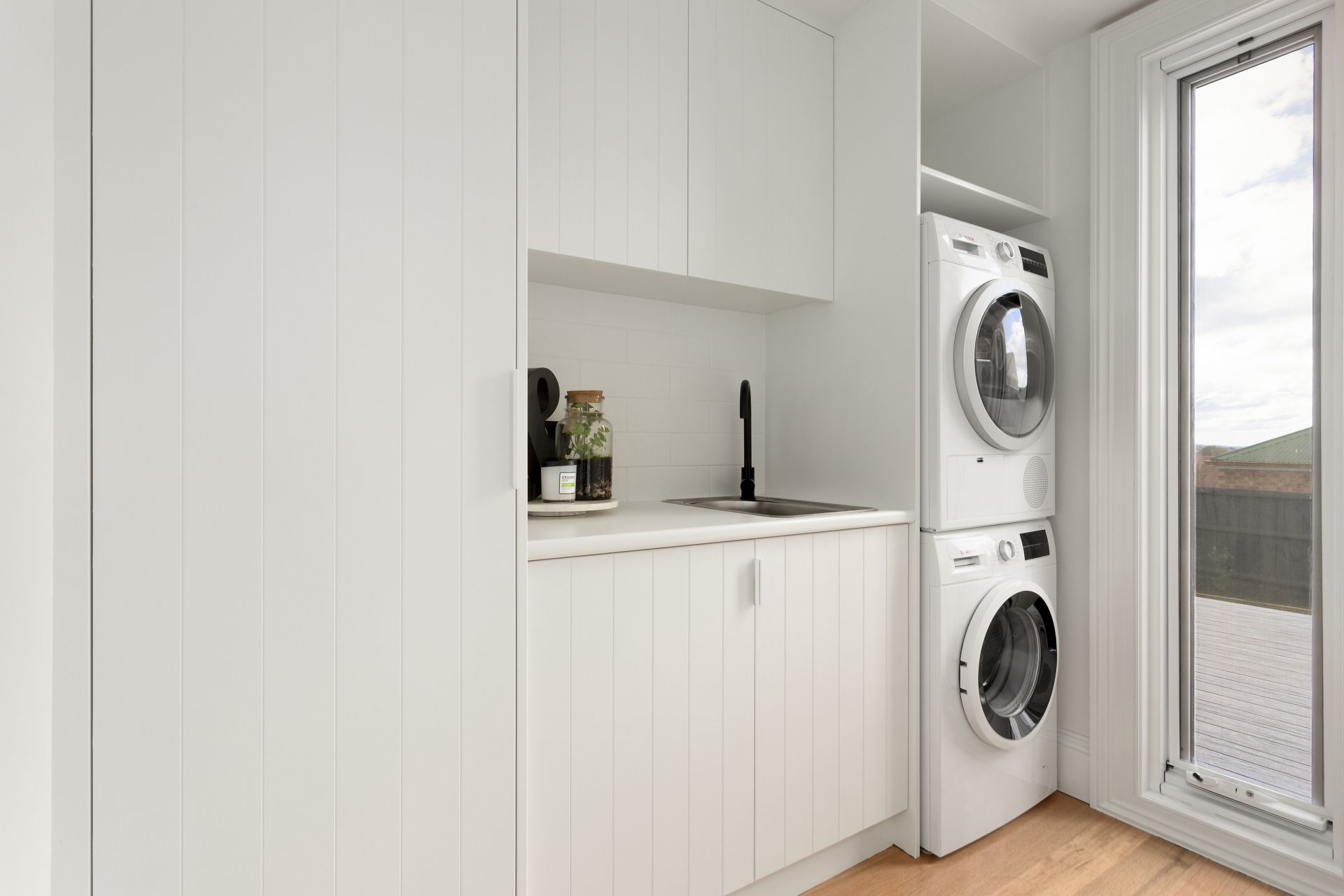 • A spacious, fully equipped laundry includes a high-end washer and dryer, making everyday tasks effortless.