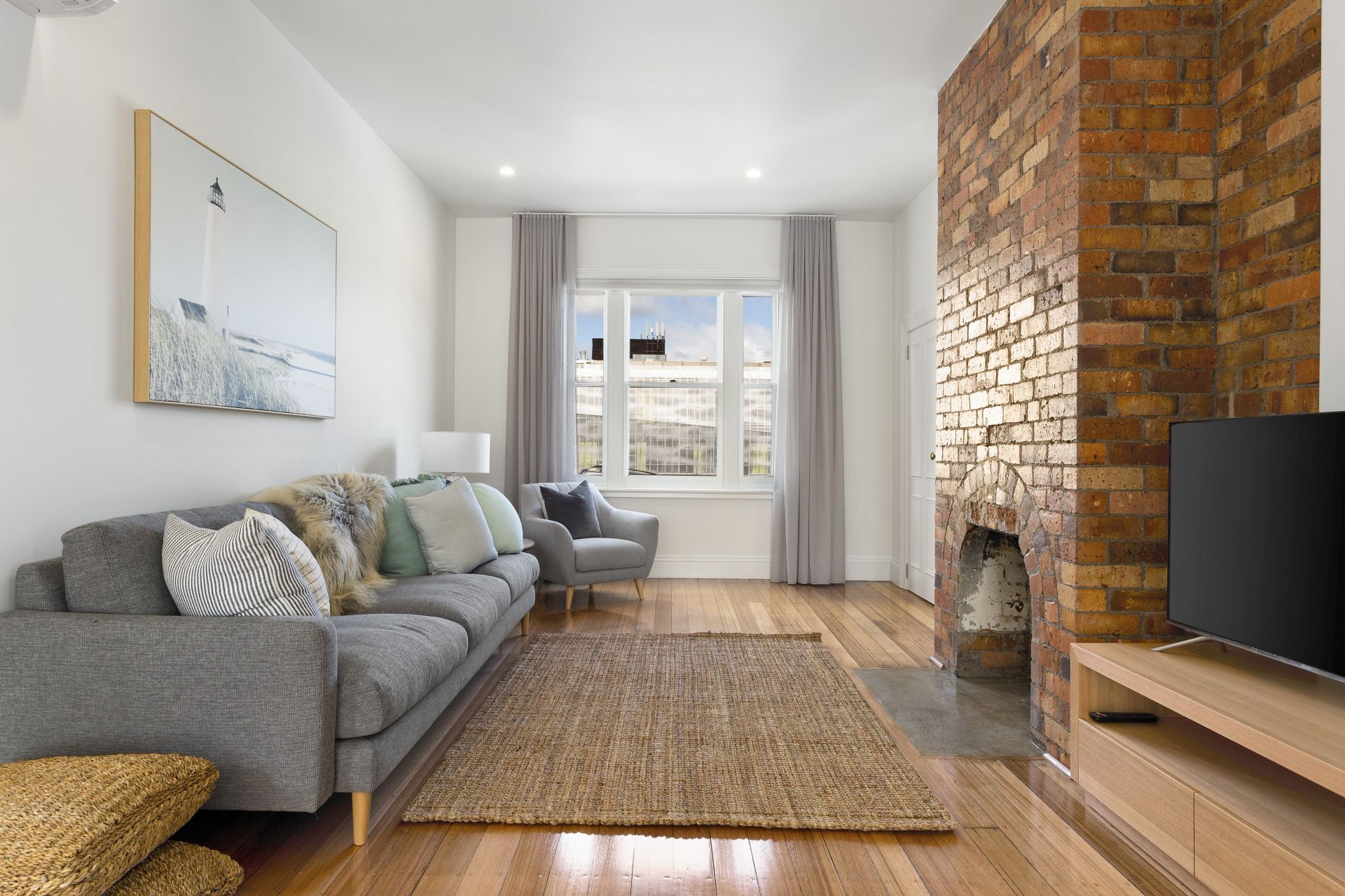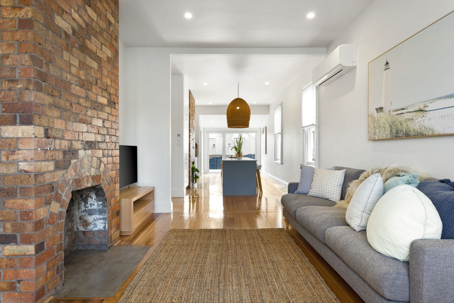 • The home is kept comfortable year-round with a reverse cycle heat pump, ensuring efficient heating and cooling.