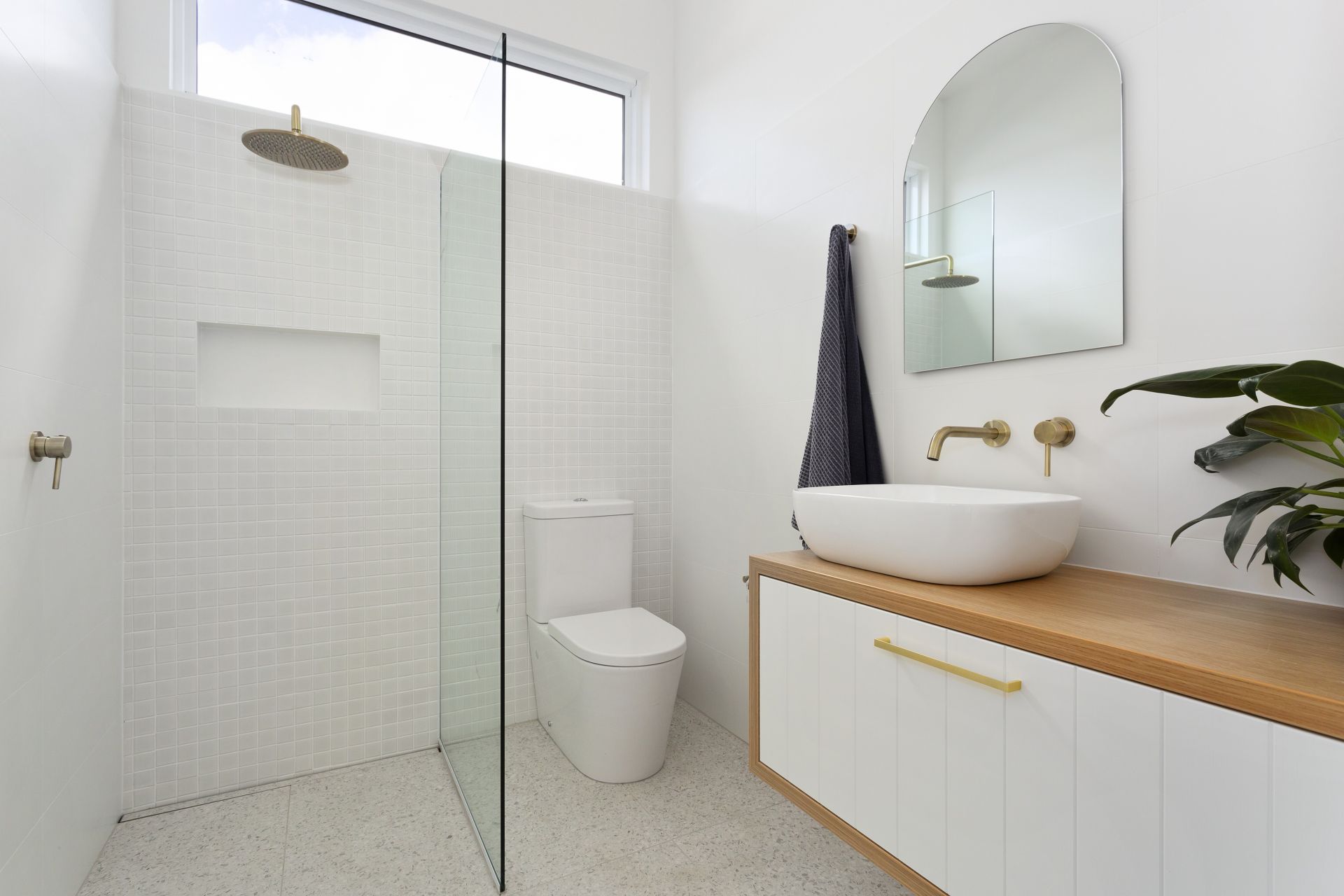 • The ensuite bathroom features a luxurious walk-in shower, stylish basin, and modern toilet, creating a sleek and relaxing retreat.