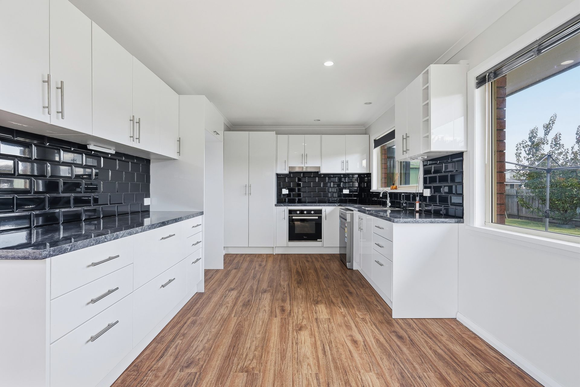 - Stylish, spacious kitchen featuring ample bench space and fitted with quality appliances