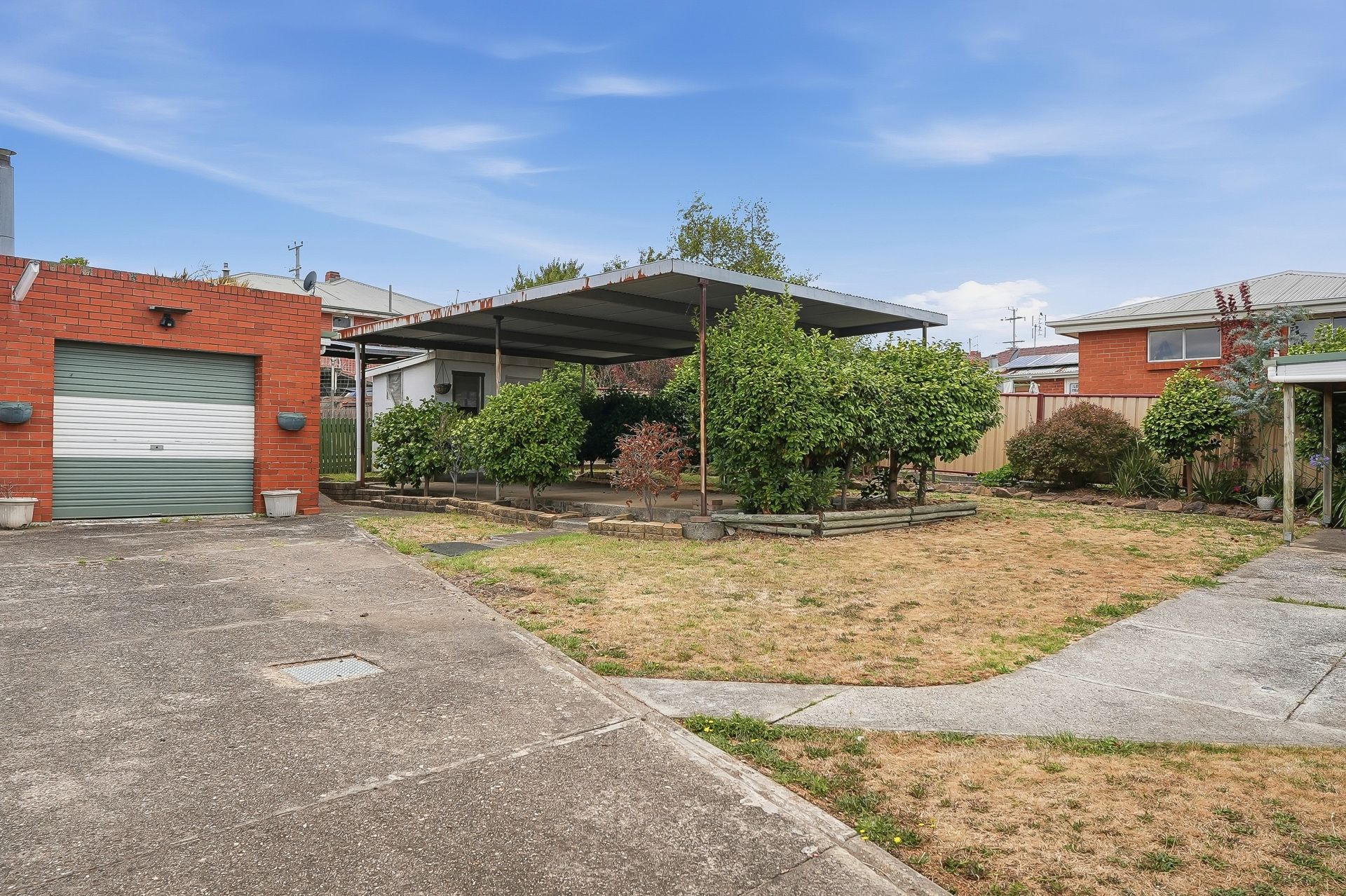 - Drive through carport with off street parking for up to four vehicles