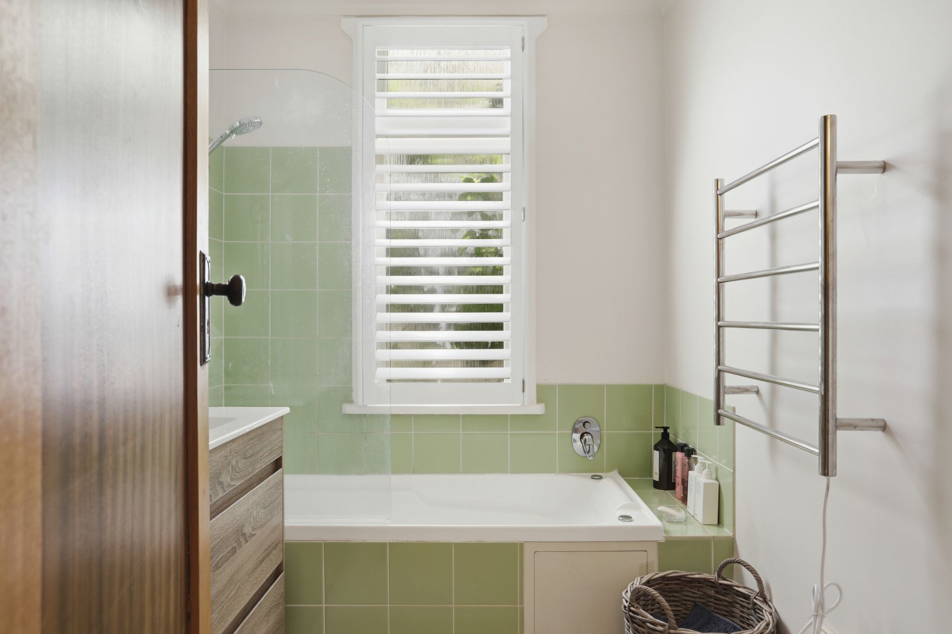 - Renovated bathroom with shower over bath