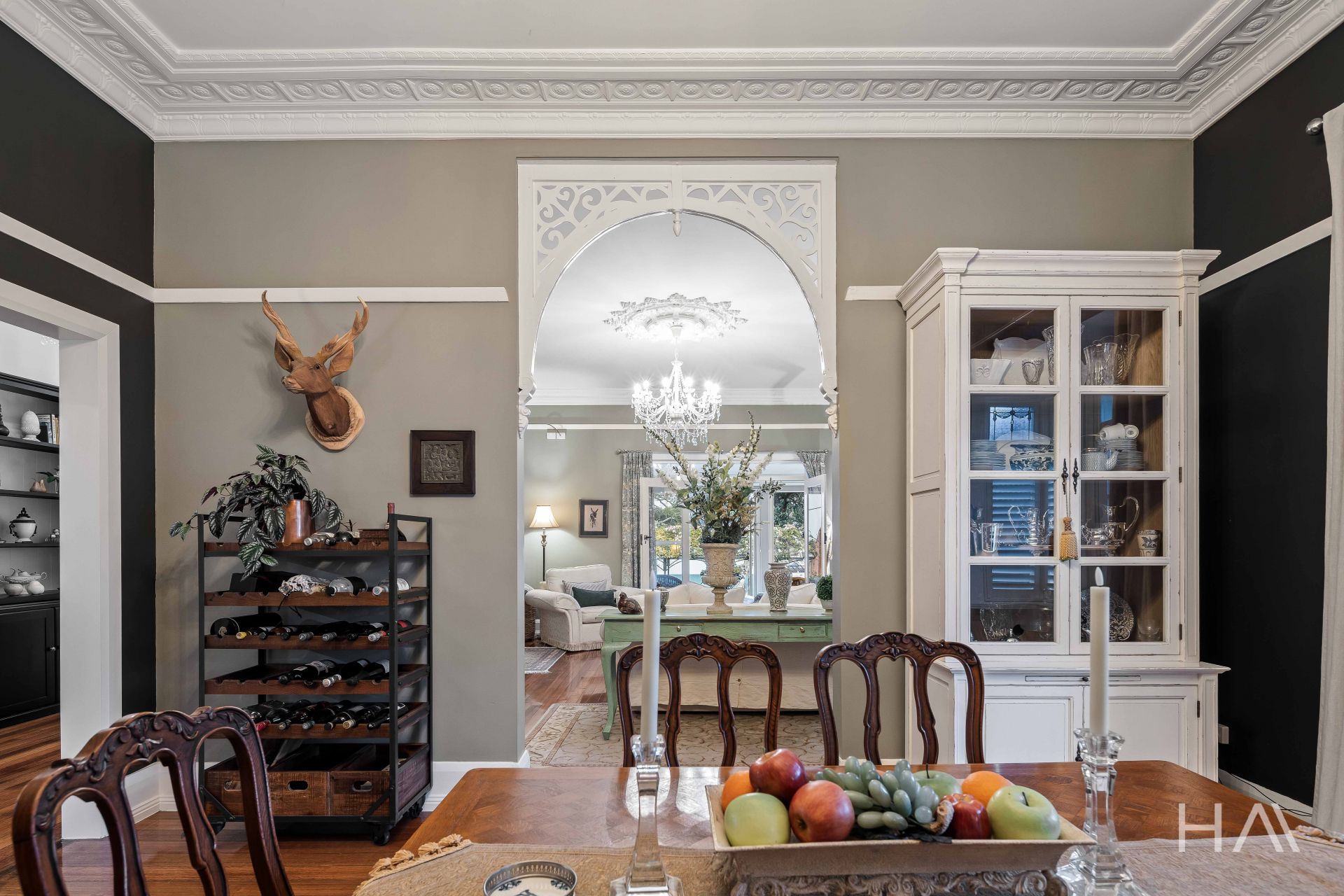 New ceilings throughout feature ornate solid plaster cornices, ceiling roses and elegant chandeliers add further refinement. The house is well insulated and the abundance of gas fireplaces provide winter warmth in minutes. Electric wiring has been upgraded and there is no shortage of power points or dimmer controlled mood lighting.