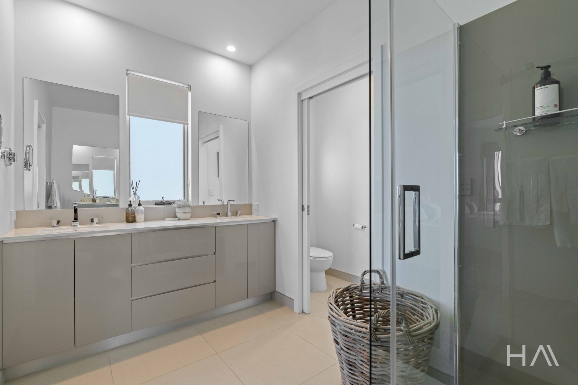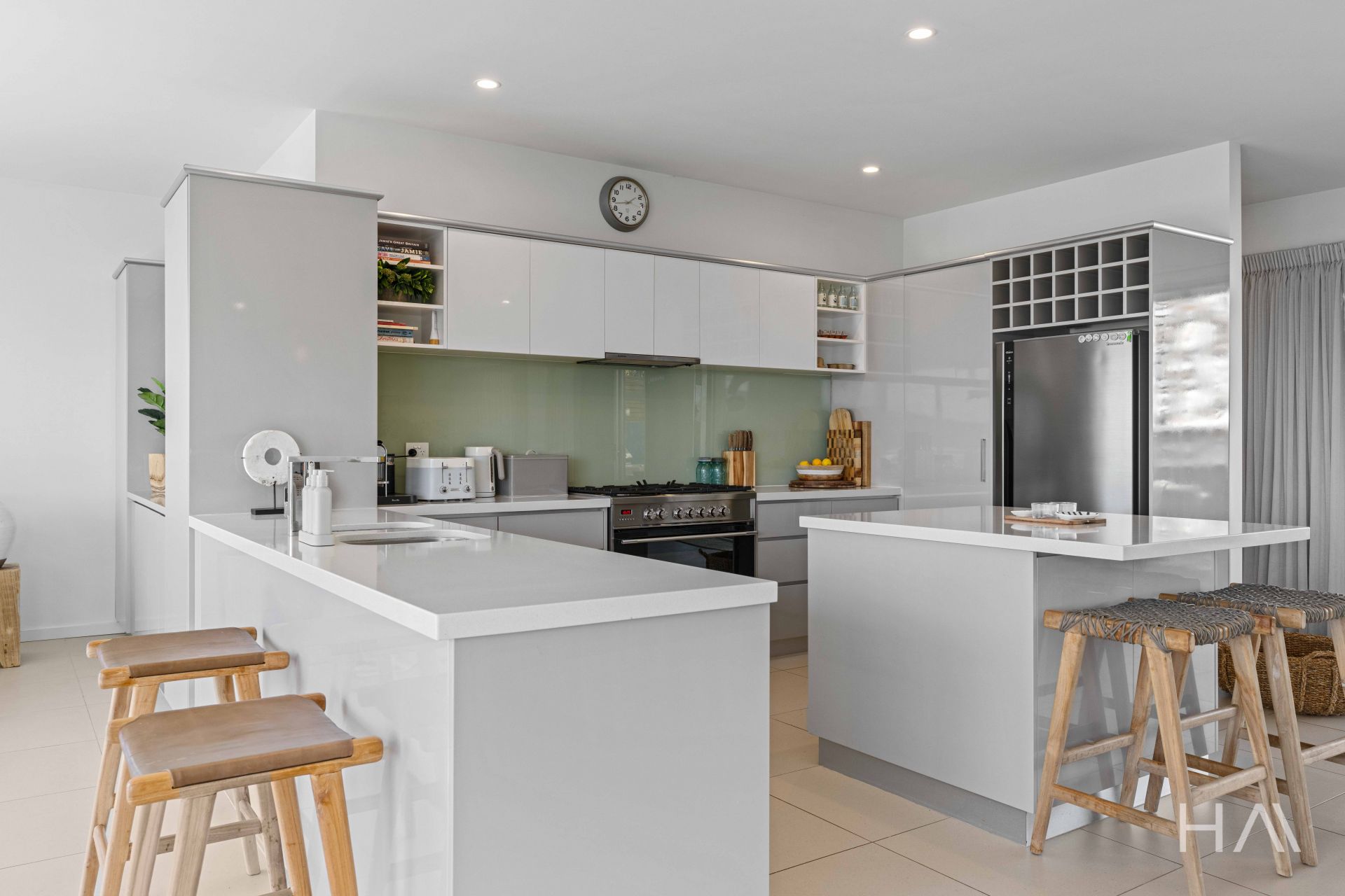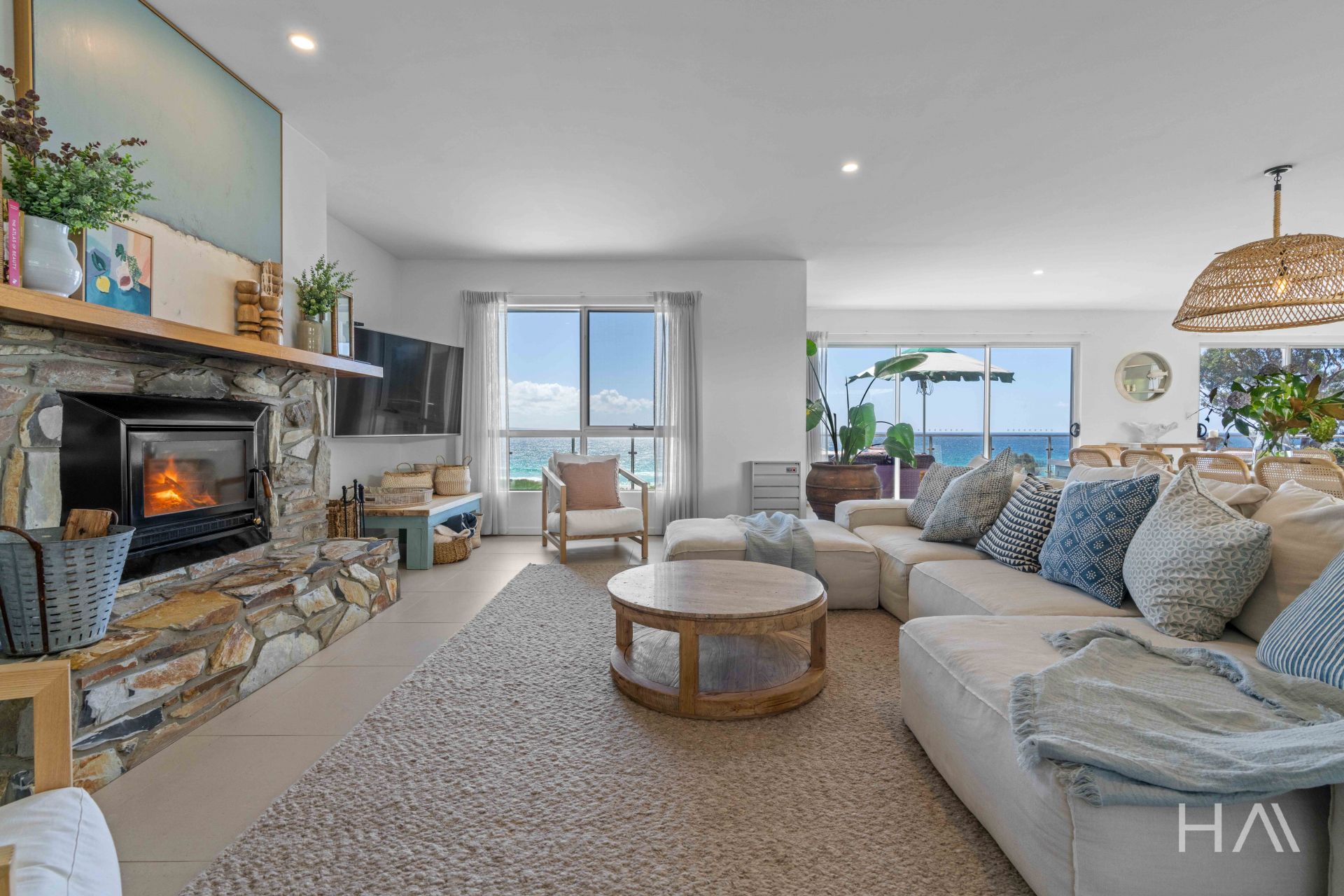 Designer finishes and intricate stone detailing underscore the emphasis on quality and style, contributing to the home's unique charm. A large deck at the front of the home overlooks the bay, providing the perfect vantage point to soak in the stunning ocean views. At the rear, a separate outdoor entertaining area offers a fully equipped outdoor kitchen, an outdoor shower and a spacious alfresco dining space, creating an ideal setting for gatherings and relaxation.
