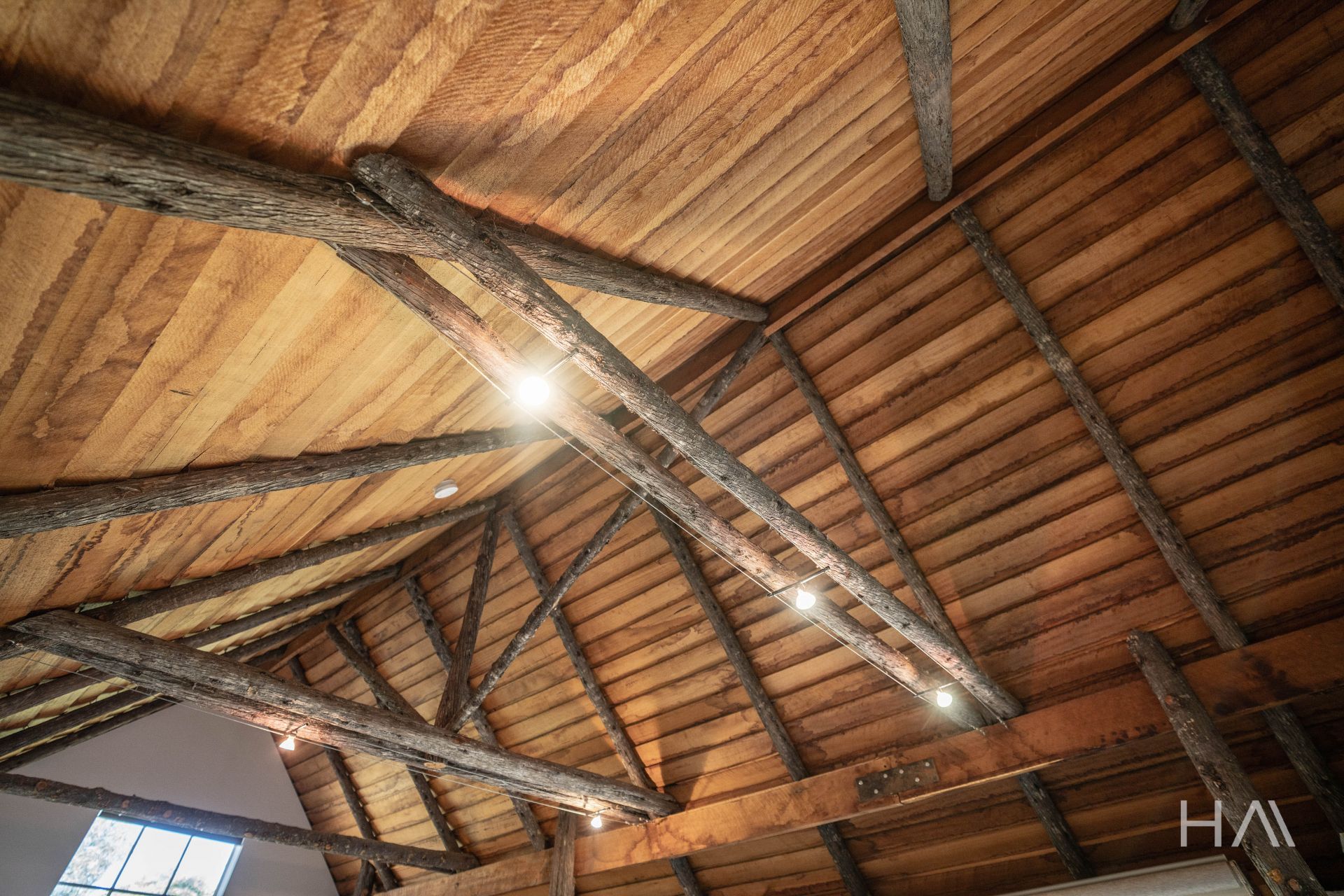 A stylish studio retreat featuring a kitchenette and bathroom, vaulted ceiling showcasing oyster bay pine rafters, perfect for couples seeking a private and intimate escape.