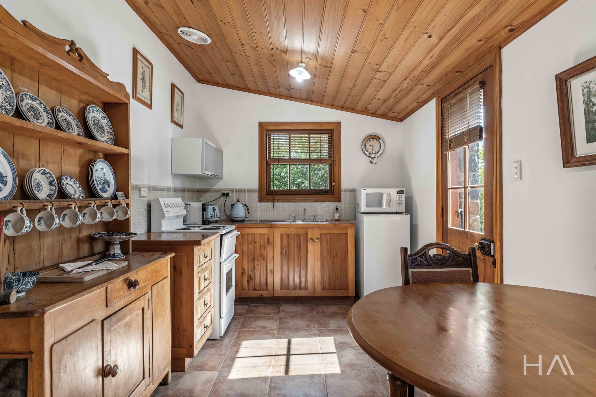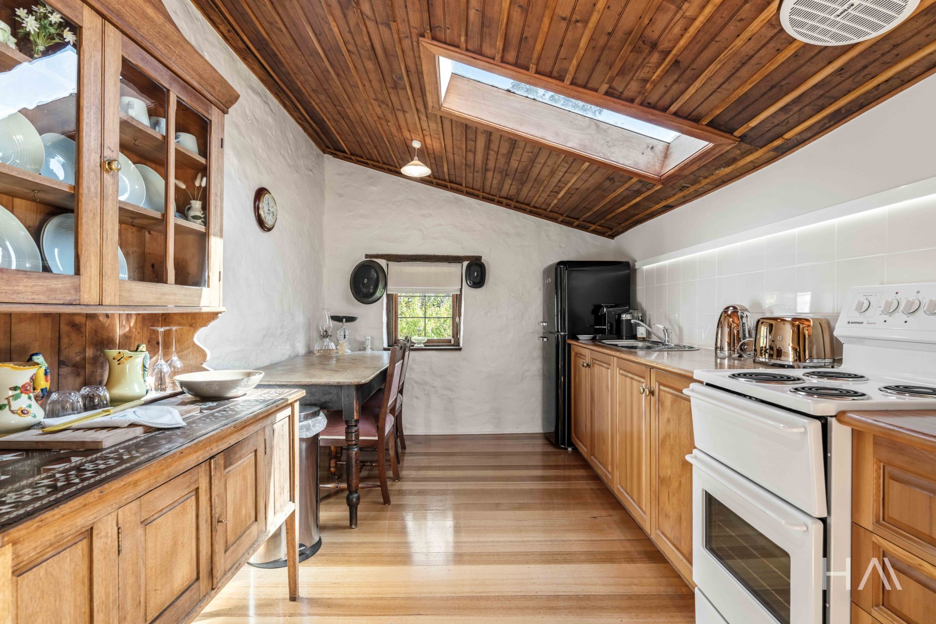 Rich in character, this beautifully preserved one-bedroom cottage includes a bathroom, kitchen and dining area, and a separate living room, showcasing the heritage appeal of the property.