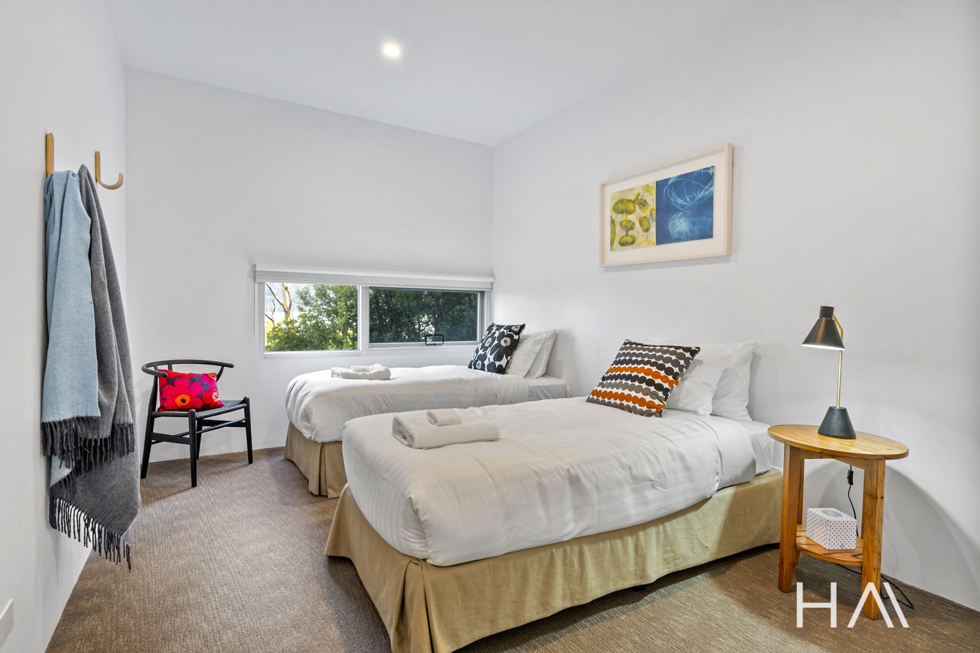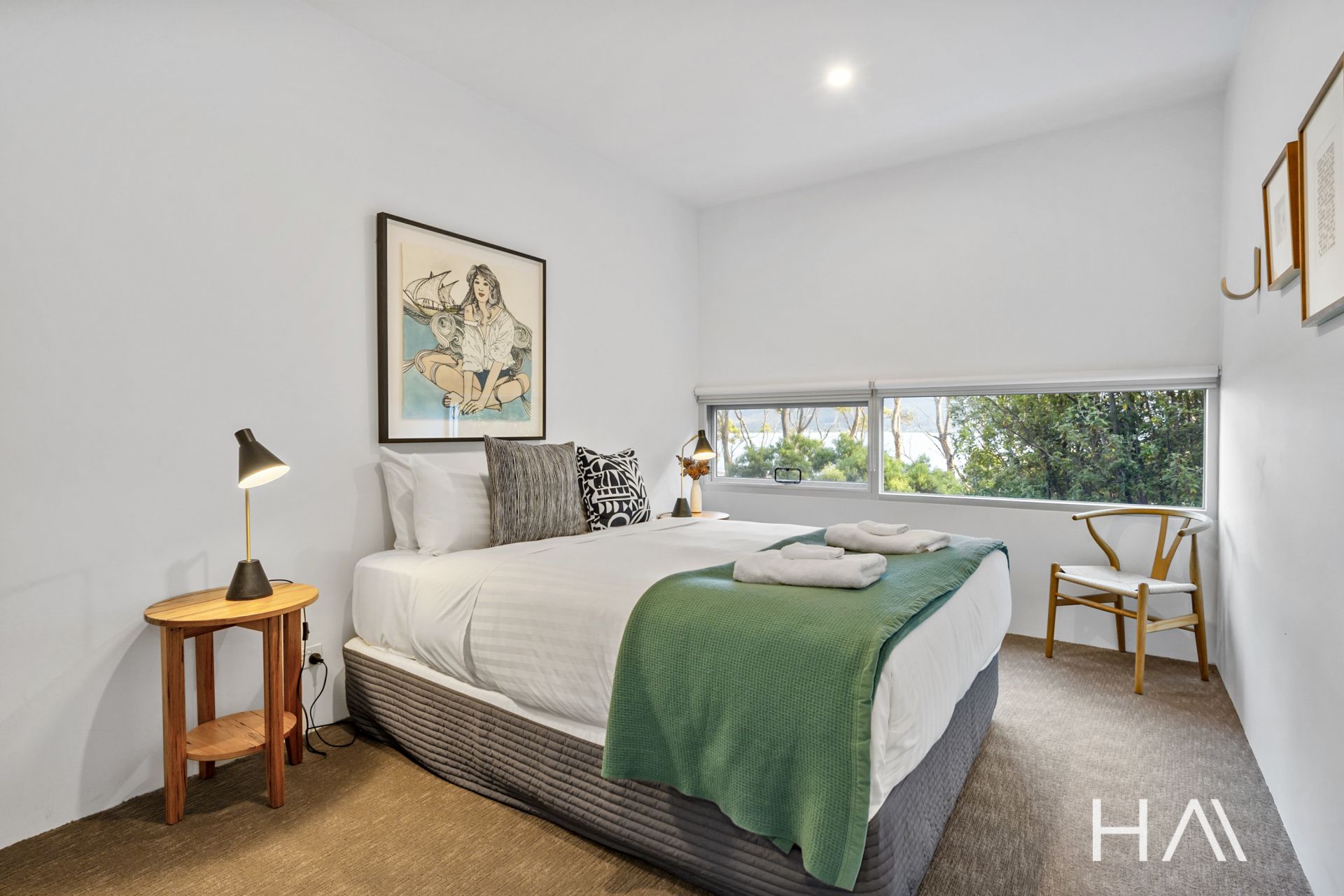 With floor to ceiling windows and sliding glass doors, the spacious living, dining and kitchen area offers superb views to the bay, coastline and bushland. A timber deck on the water side welcomes the morning sun and provides the ideal spot to start the day, while the paved courtyard with built-in barbecue on the rear side, catches the afternoon sun and offers the perfect sheltered location for lunches and evening meals while still enjoying the water views. From the living area at the centre of the home extend two accommodation wings. To the west, a hallway leads to a contemporary bathroom with quality fittings and sea views from the bath, two double bedrooms, a twin bedroom, and at the far end, a four bed bunkroom, all with built-in wardrobes. The eastern wing accommodates a luxurious master bedroom with walk-through wardrobe, elegant en suite, and sliding glass doors opening to a private deck. A double garage with adjoining toilet and a discrete outdoor shower completes the main buildings on the property. Surrounded by sensitively landscaped, low maintenance gardens and pathways, there is ample space for recreational activities, including an established boules/bocce court.