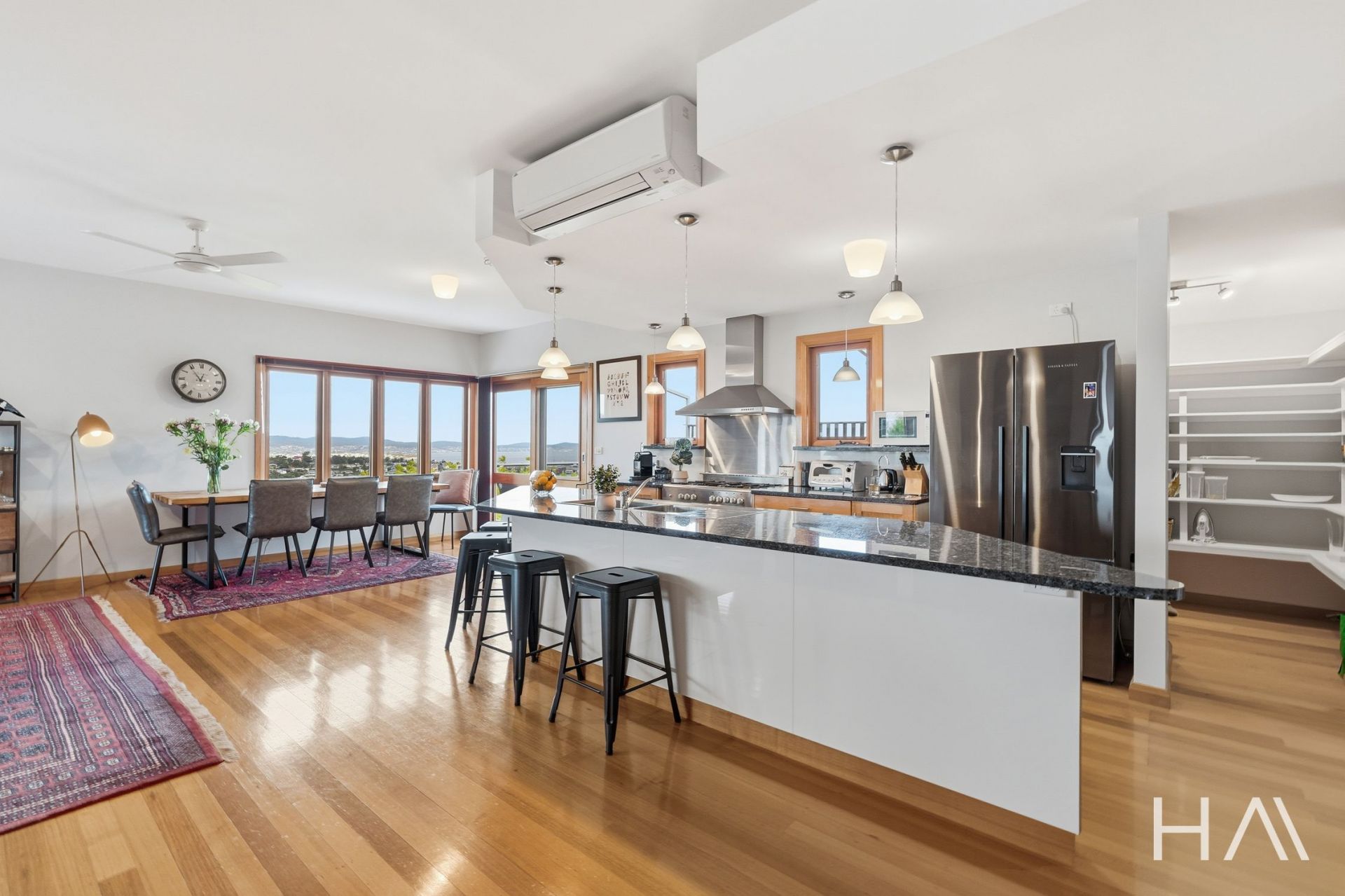 Across five bedrooms, four bathrooms, a powder room and a separately accessed office, the home delivers impressive space for larger families or those seeking adaptable living. Sunlight, views and polished Tasmanian Oak floors uplift the interiors, while upgraded heating, solar features and double-glazed safety glass in the living area ensure comfort year-round. A one bedroom unit on the lower level which can be tenanted or kept as a granny flat or teenagers retreat rounds off the accommodation in this glorious home. A lift has also been installed for your convenience.