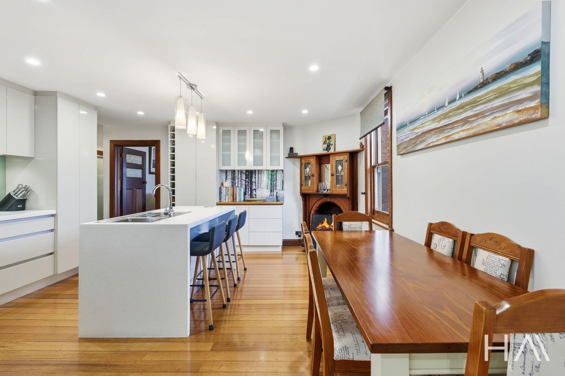 The fully renovated kitchen and living spaces flow naturally, designed for modern life while preserving the home's warmth and soul. Every update-from the polished floors to the custom lighting-has been carried out with respect for the home's heritage. There is mains gas open flame heating and gas hot water as well as reverse cycle air conditioning throughout and 13 kw of solar panels with battery.