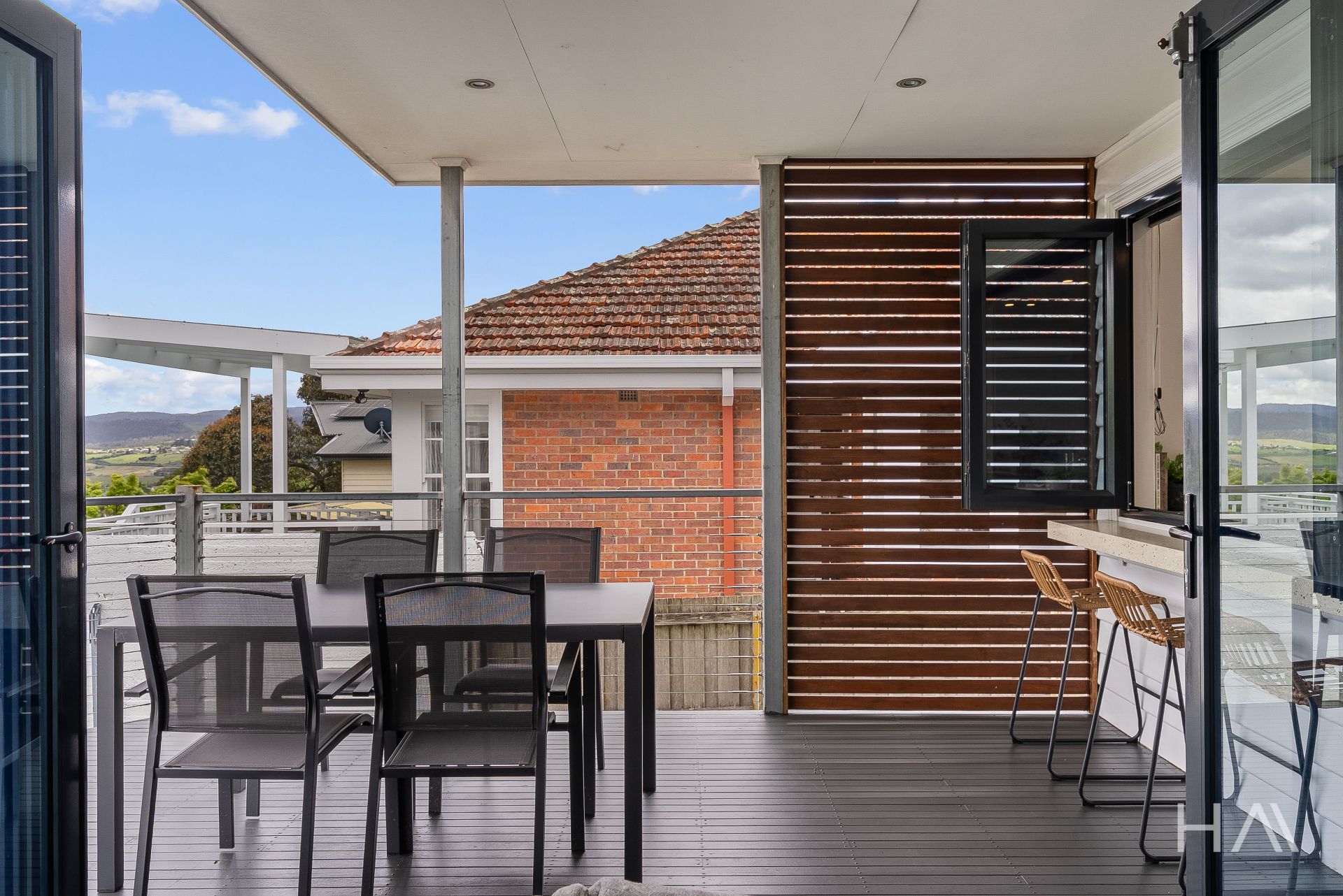 Light filled and thoughtfully designed, the home features Tasmanian oak flooring, quality carpets and tiled finishes throughout. The open plan living, dining and kitchen area is an inviting space, enhanced by cathedral ceilings, expansive windows and seamless flow to the outdoors. The modern kitchen is a true stand-out, including bi fold windows that open directly to the outdoor breakfast bar, creating the perfect connection for alfresco dining, casual meals or entertaining. Bi fold doors from the lounge further open to the northeast facing deck, which enjoys sweeping views and abundant sunshine.