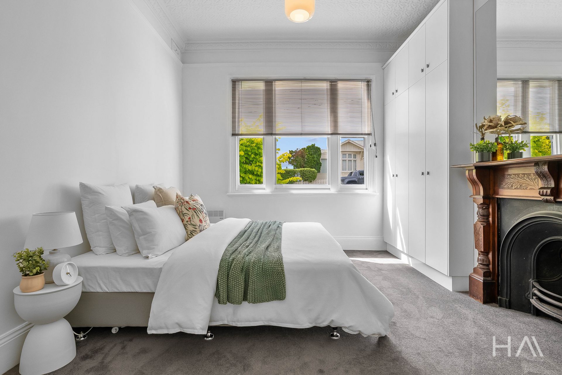 Three generous bedrooms all feature fireplaces, with the master bedroom offering a generously sized ensuite and a charming pressed tin ceiling unique to this room. Both bathrooms are fully tiled, with the main bathroom beautifully appointed and the ensuite including a separate shower and bath. Character filled elements blend effortlessly with the home's modern updates.