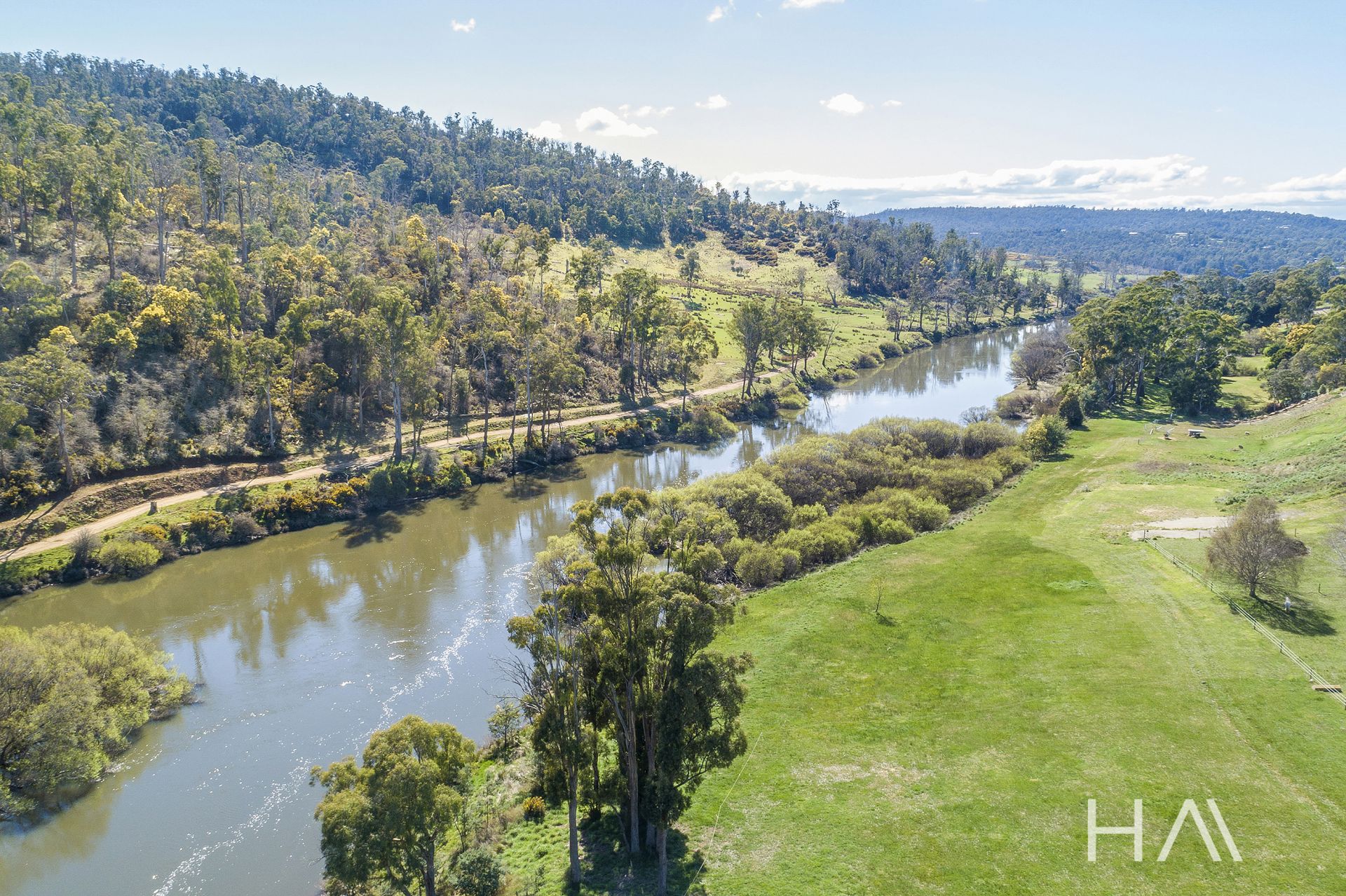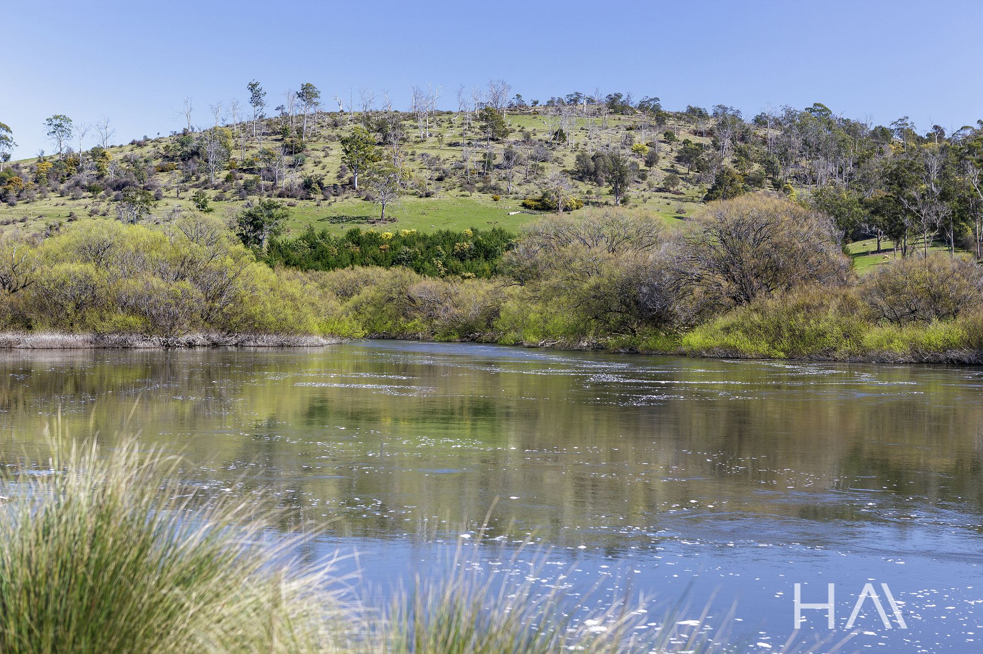 Immerse yourself in the breathtaking views that stretch across vast open fields to the serene river and beyond, framing the majestic Great Western Tiers in the distance.
