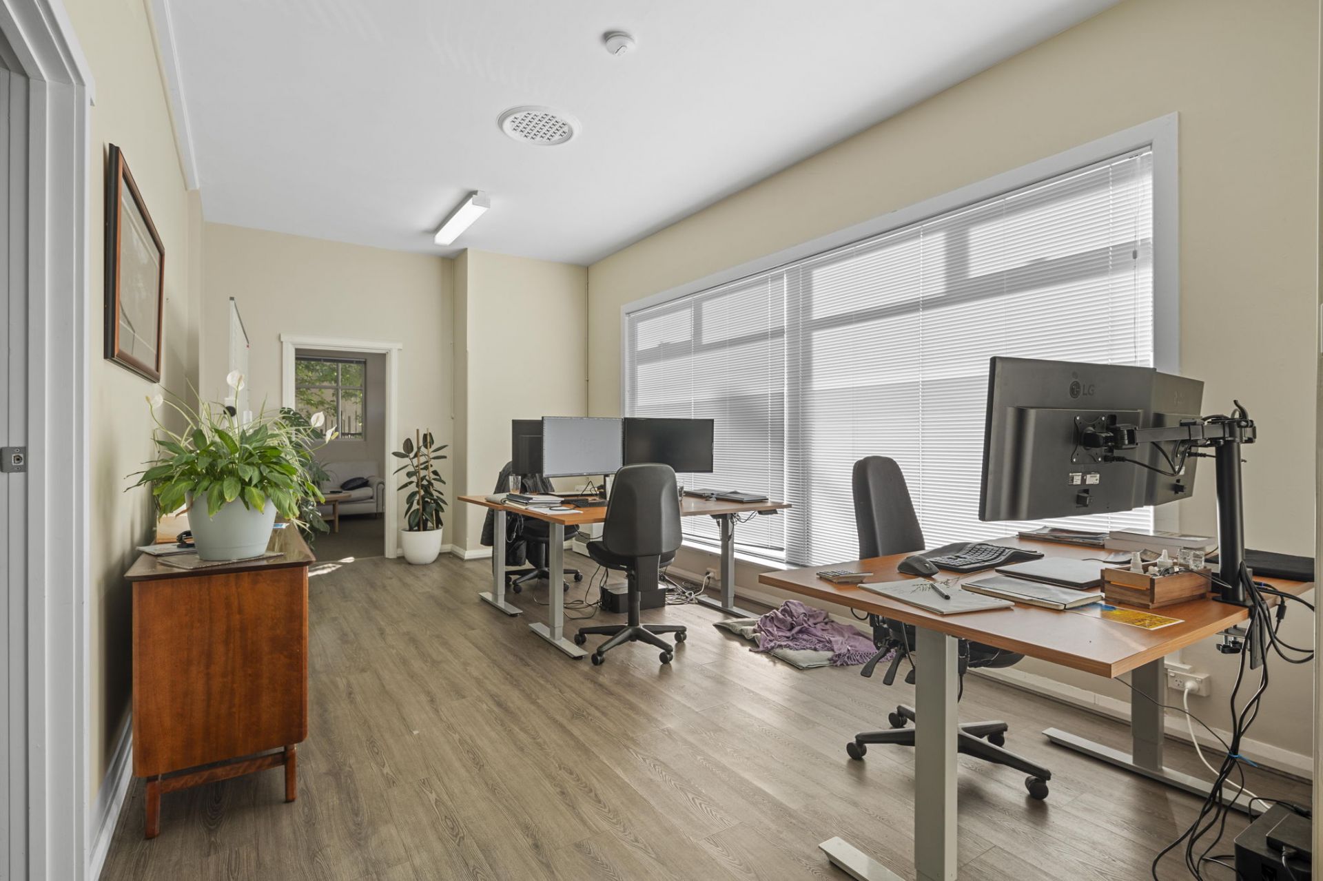 Additionally, the residential component of the property features four large bedrooms, dual-access ensuites, a designer kitchen, dining room, home office, and wrap-around balcony. Secluded gardens, an alfresco area, rear access, and secure parking add further appeal.
