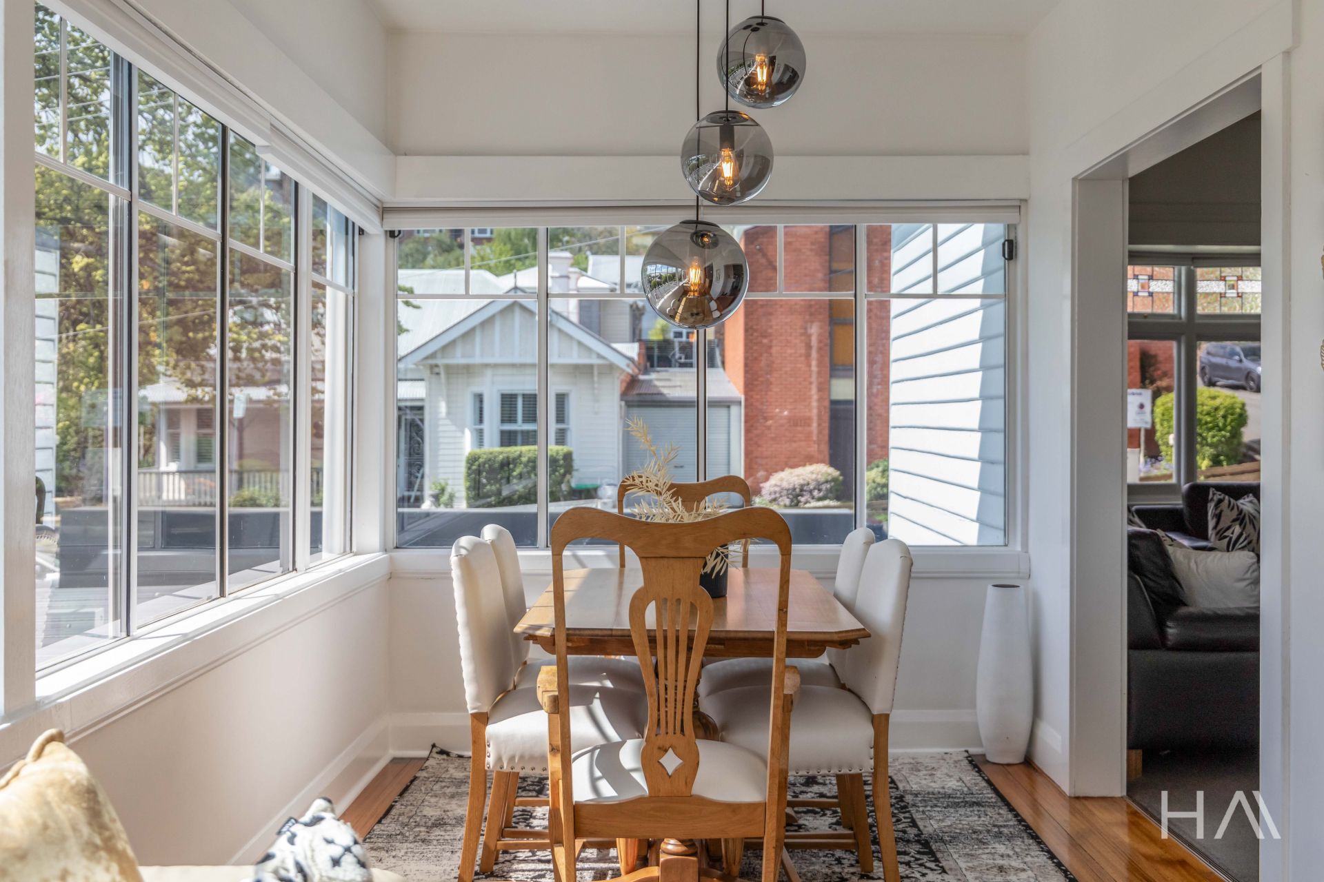The thoughtfully designed interior flows seamlessly, with original polished floorboards adding to the home's timeless appeal. The lounge and dining areas offer an inviting sense of comfort, bathed in natural light from a desirable north-easterly aspect that captures the sun throughout the day.
