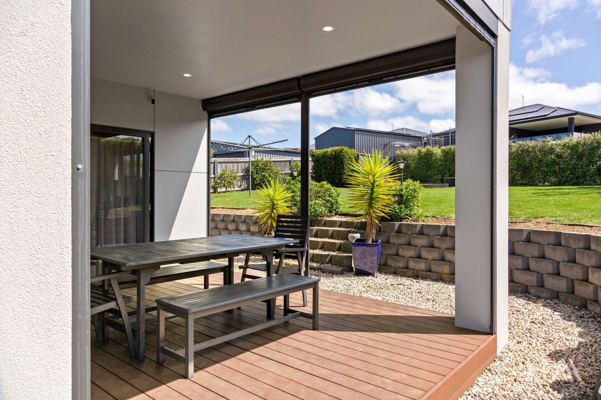 Step outside to discover an enchanting outdoor entertaining area that adapts to all seasons. Fully enclosed with innovative open-close rollers, this space allows you to enjoy alfresco living year-round-perfect for sun-soaked afternoons or breezy evenings under the stars. This versatile area acts as an extension of your living space, ideal for gatherings with friends or quiet moments of solitude.