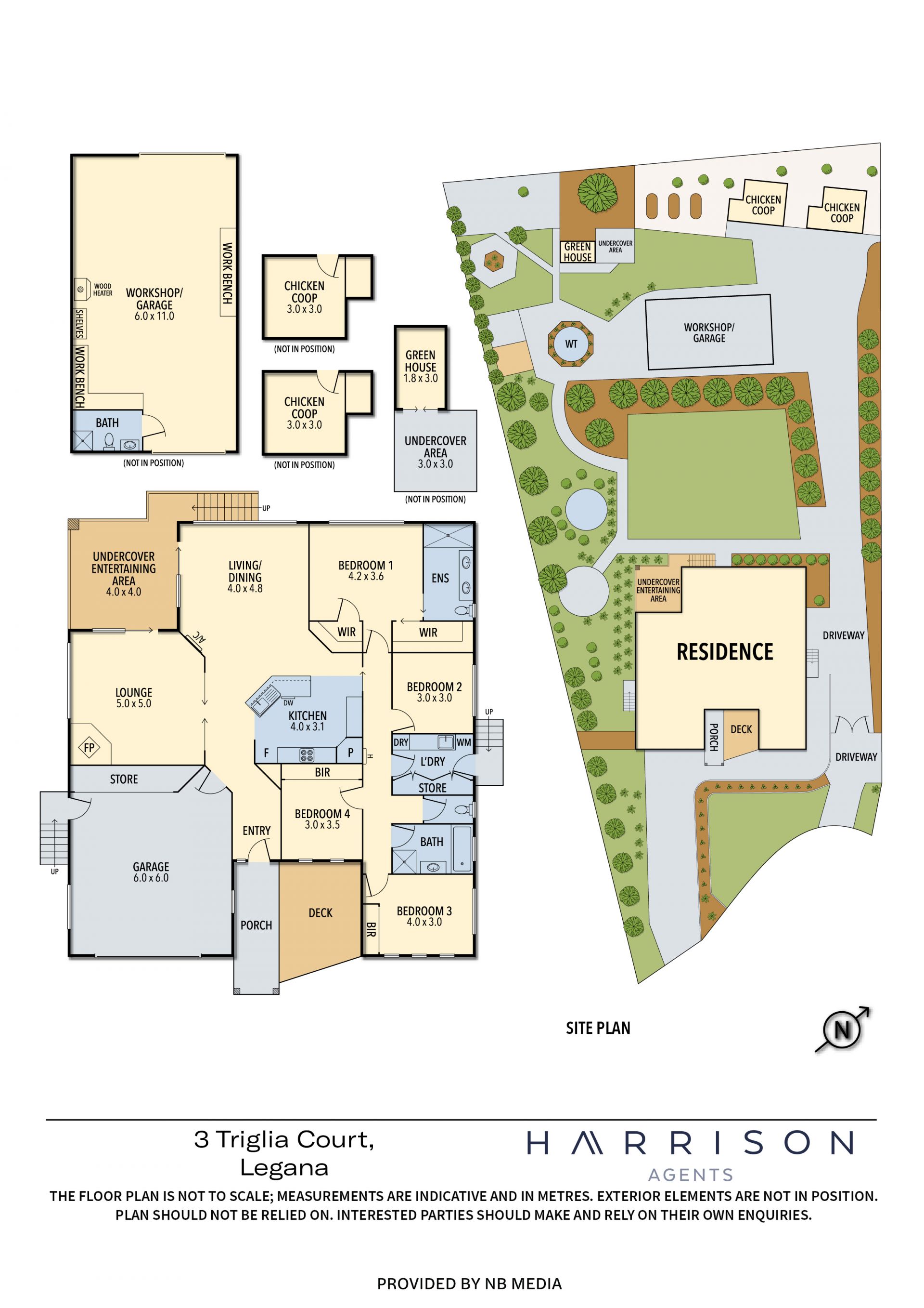 Outside, the undercover entertaining area extends into an expansive, flat backyard that's both private and family-friendly. This well-maintained space includes chicken coops, a greenhouse, and plenty of room for kids or pets to enjoy.