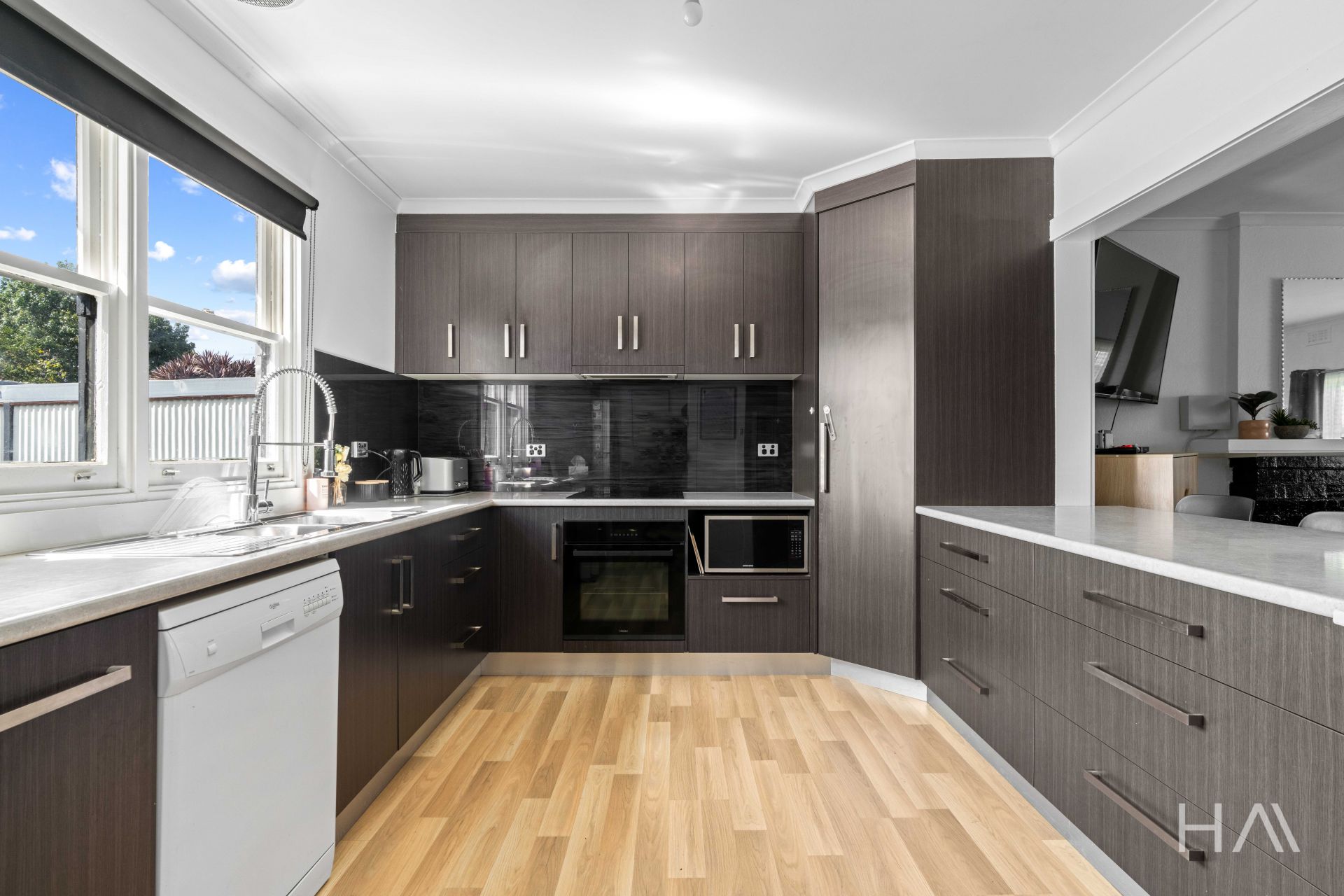 * Living Area: Experience seamless flow between the open-plan kitchen and living area, creating an inviting space for relaxation and entertainment.