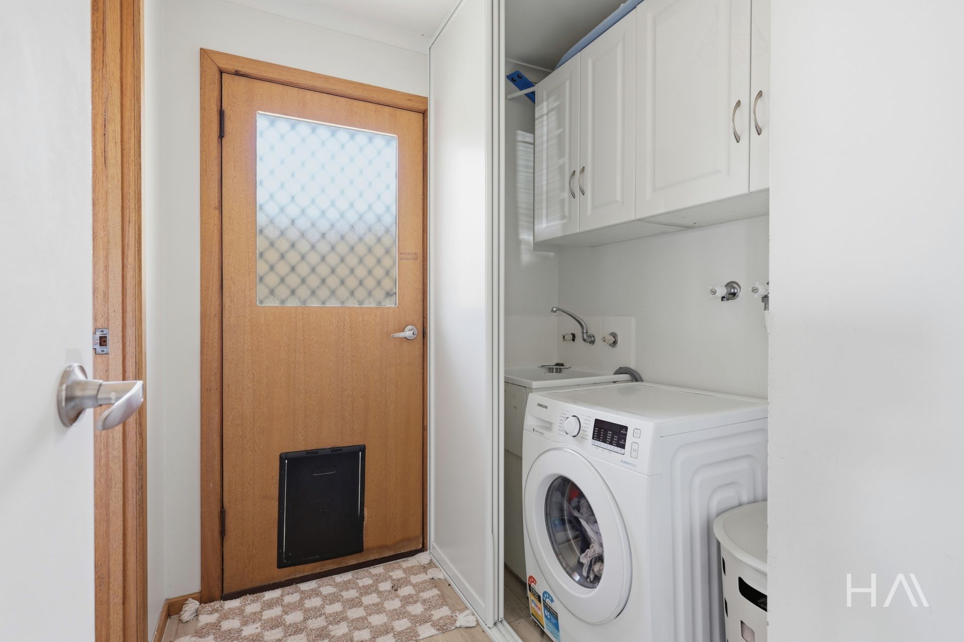 A cleverly designed laundry is tucked neatly behind sliding doors, maximising space and practicality. Adjoining this area is an additional bathroom complete with shower, offering flexibility for families or guests.