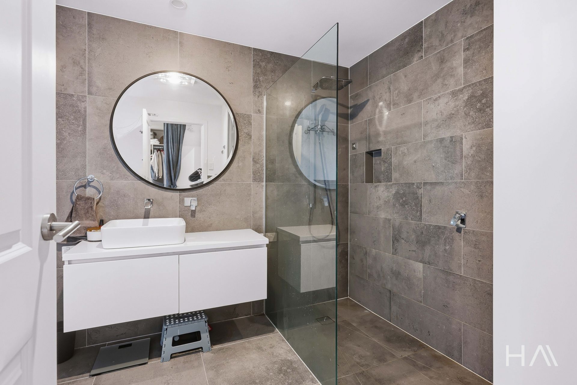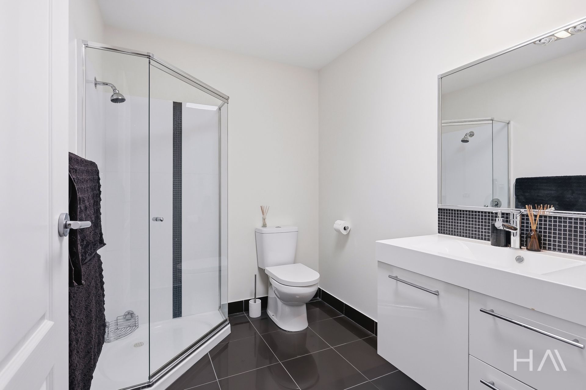 * Main bathroom with shower, vanity, and toilet