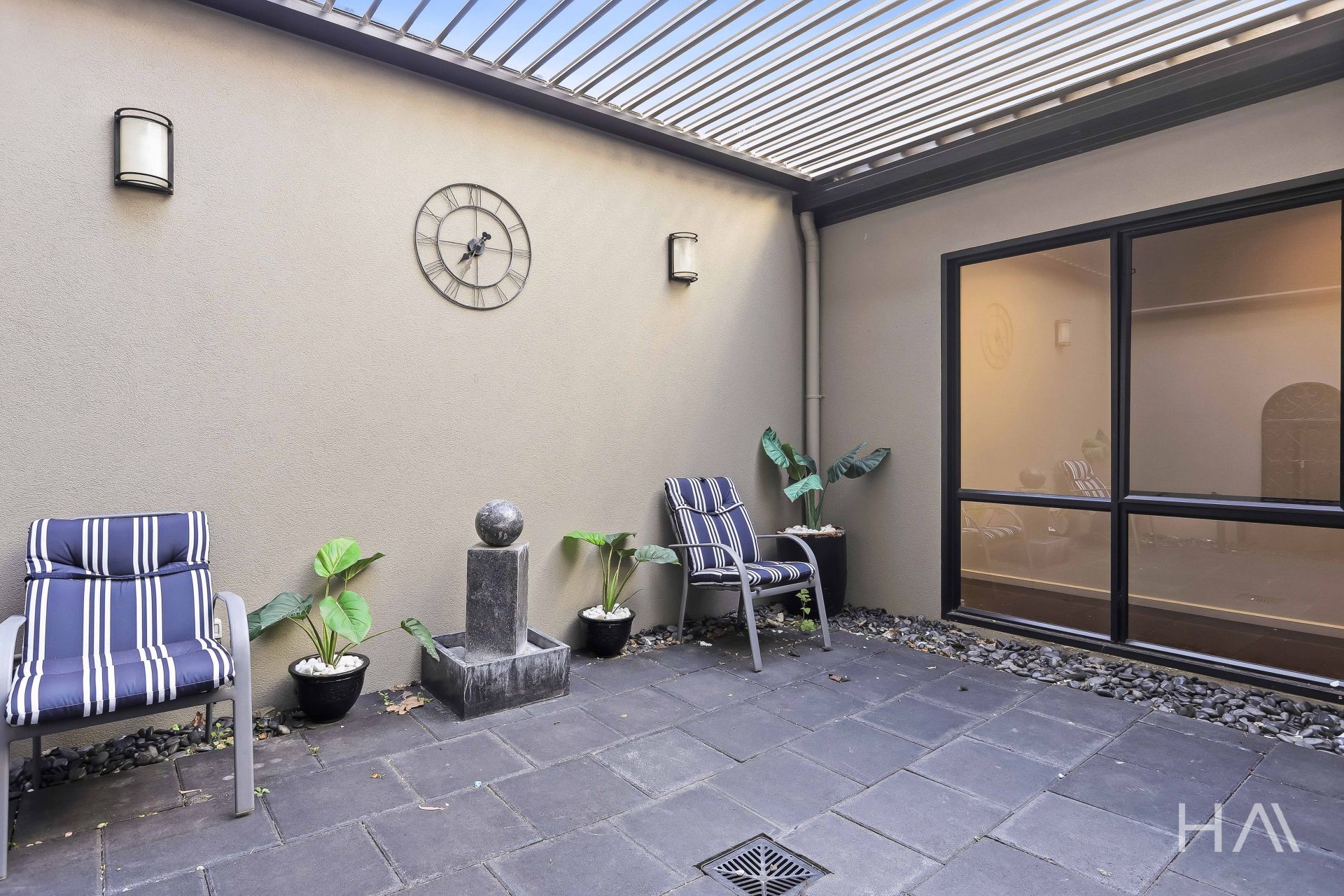 * Rear outdoor courtyard