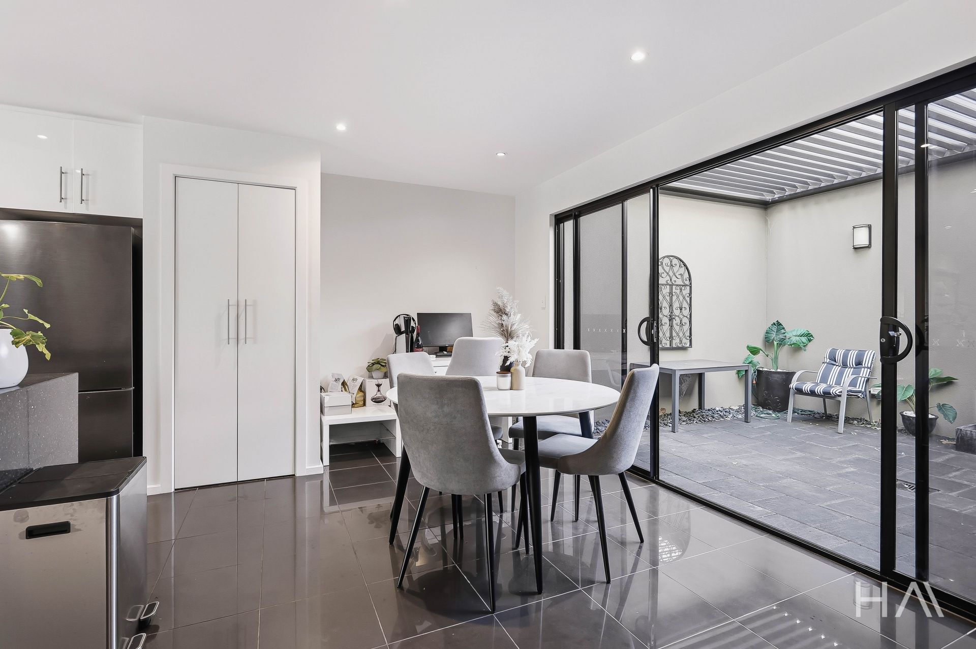 * Flexible dining space with large sliding doors opening to the enclosed courtyard