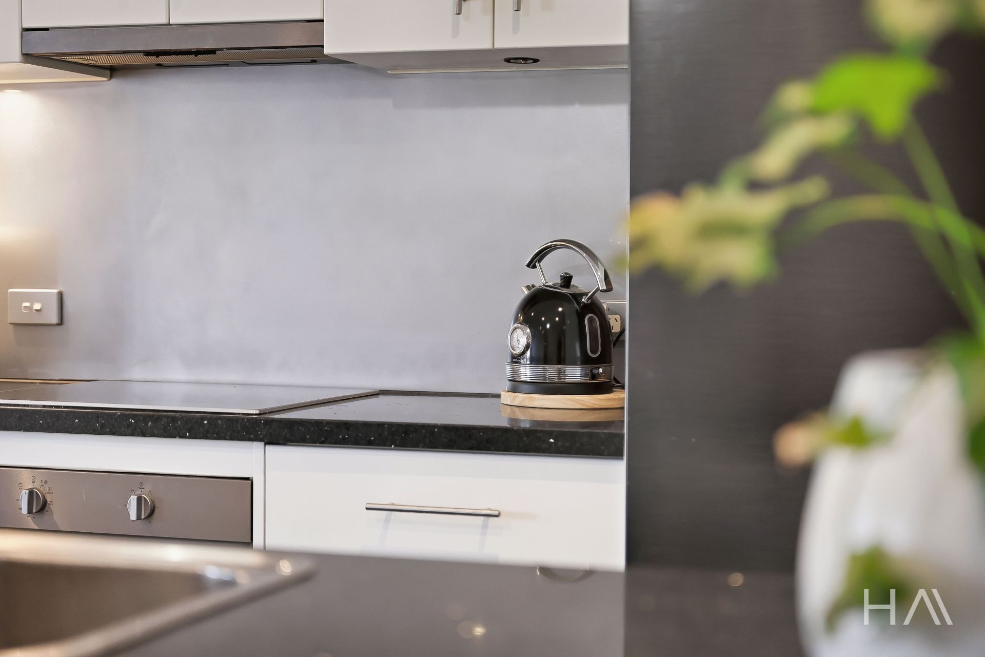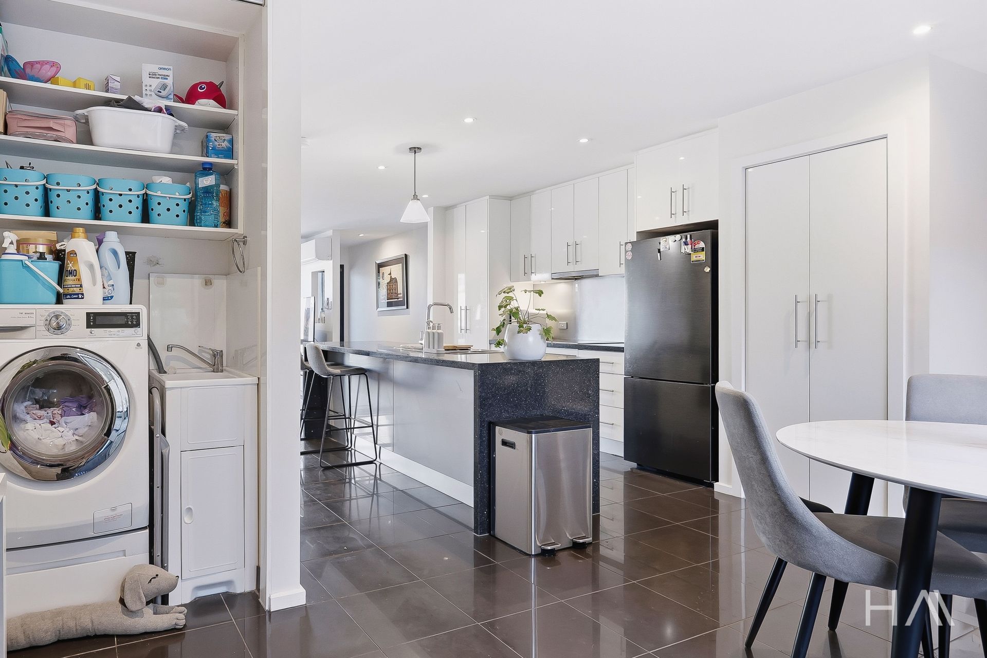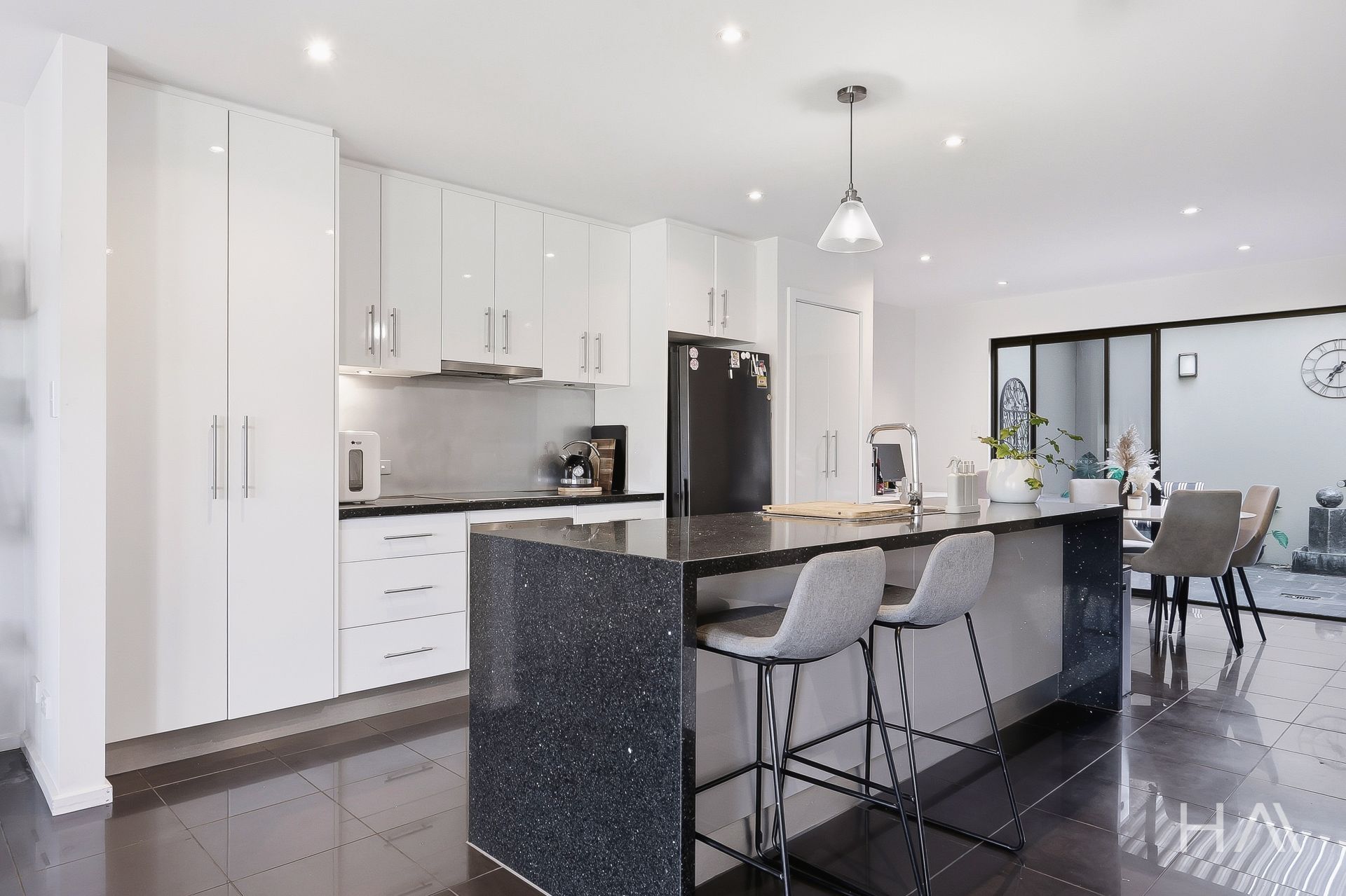 * Contemporary kitchen featuring a large island bench, quality appliances, and ample storage