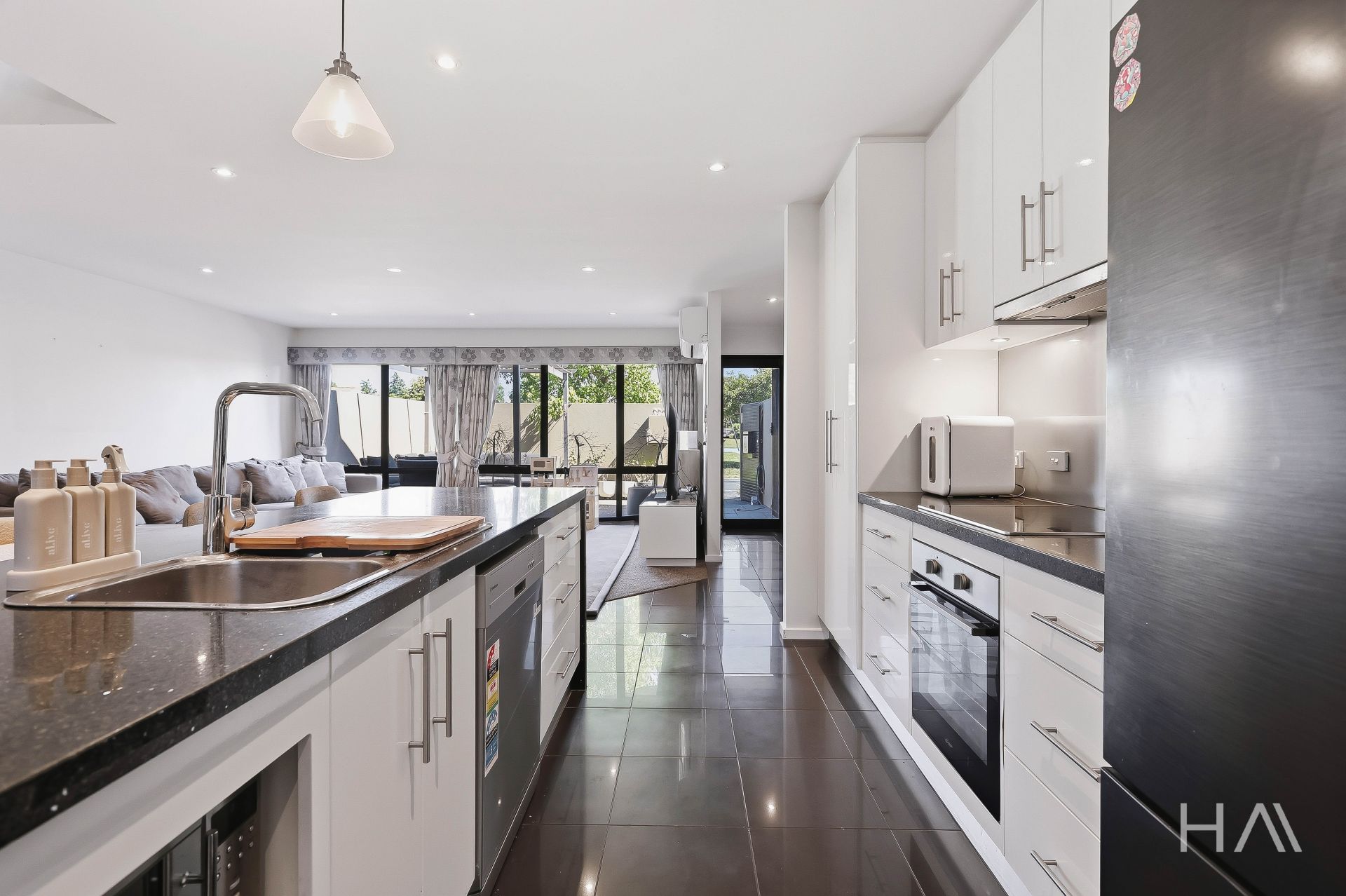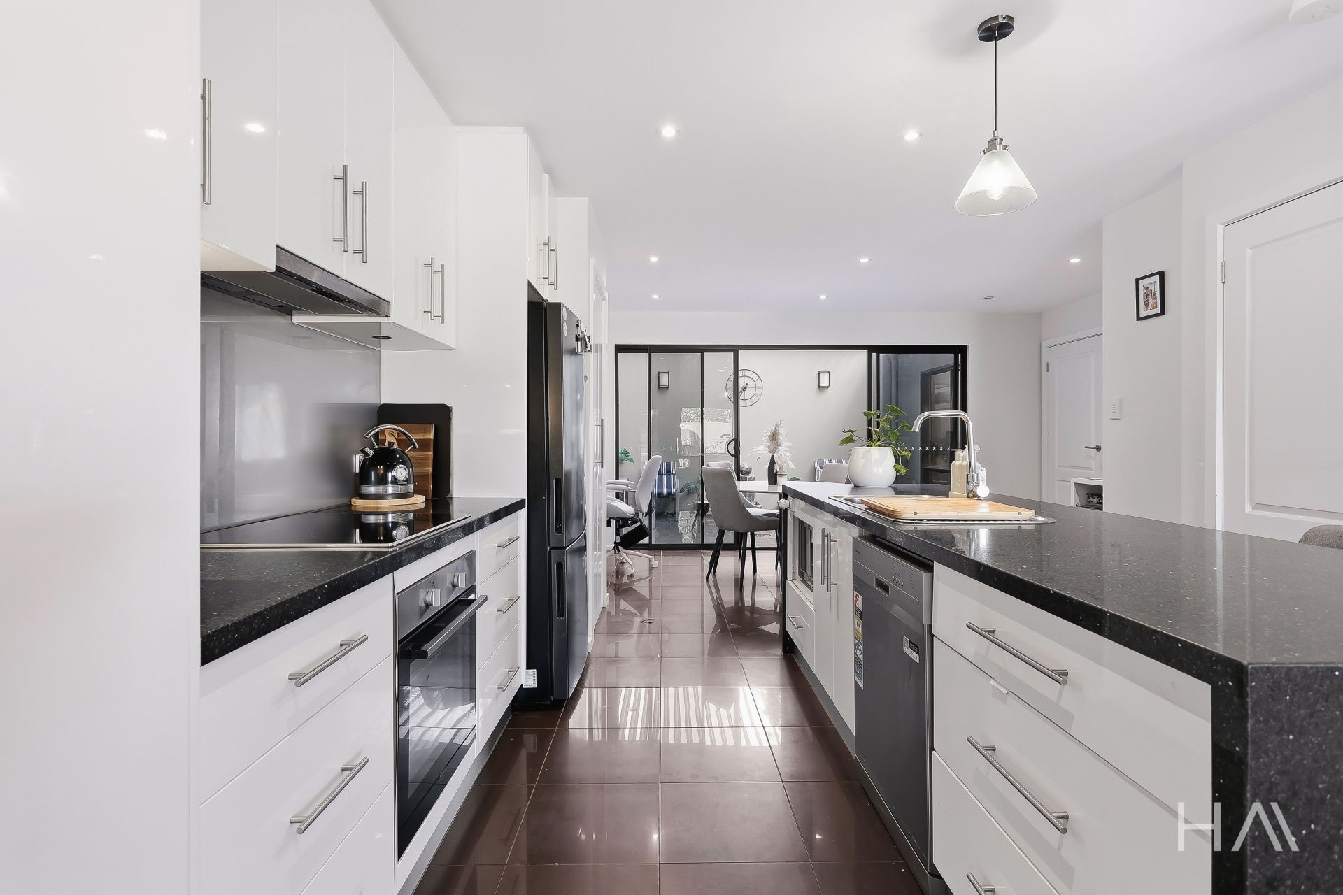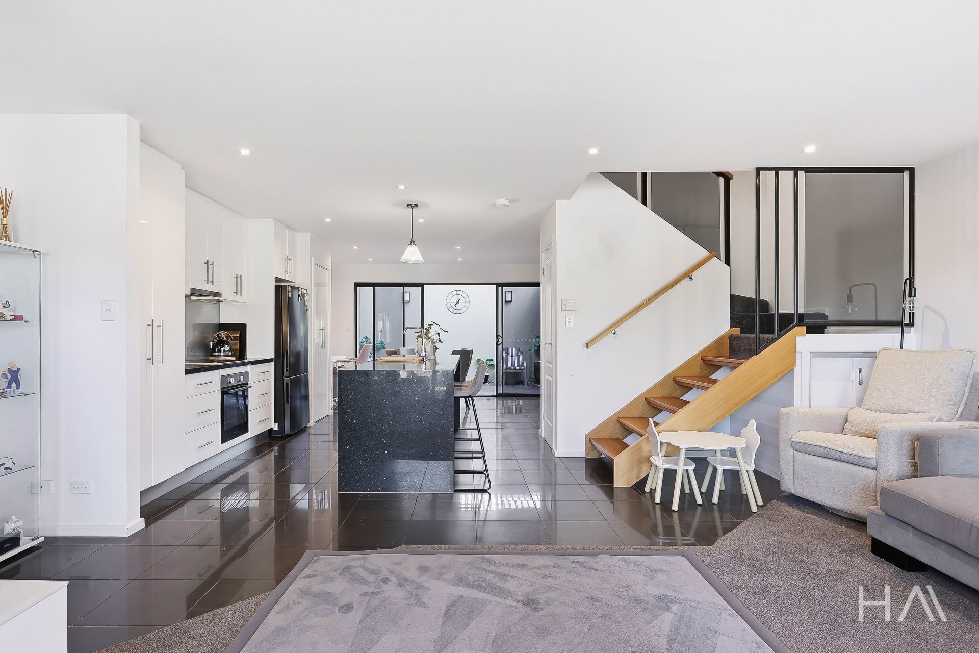 Set behind a private front gate, the home immediately impresses with a welcoming courtyard that highlights the quality and seclusion on offer. The ground level features a spacious open-plan living area that connects seamlessly with the contemporary kitchen. Designed for both functionality and style, the kitchen boasts a large island bench, quality appliances, and an abundance of storage. There is ample room for a variety of dining configurations, while large sliding doors extend the living space into the enclosed courtyard.