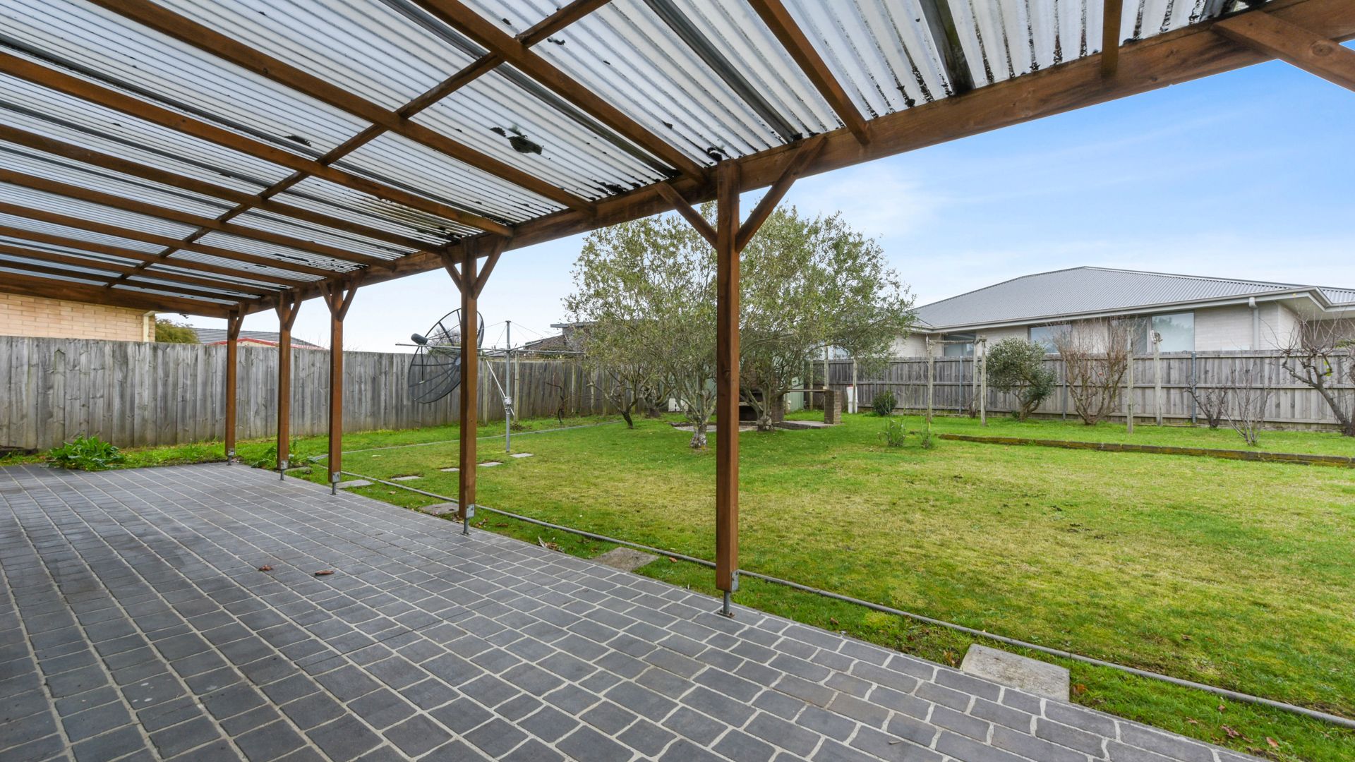 Out the back, there's a large undercover entertaining area that's perfect for BBQs or get-togethers. The backyard is fully fenced with a grassed area - plenty of space for kids or pets to play. There's a gate at the side of the house for car access to the rear, plus loads of off-street parking out front.