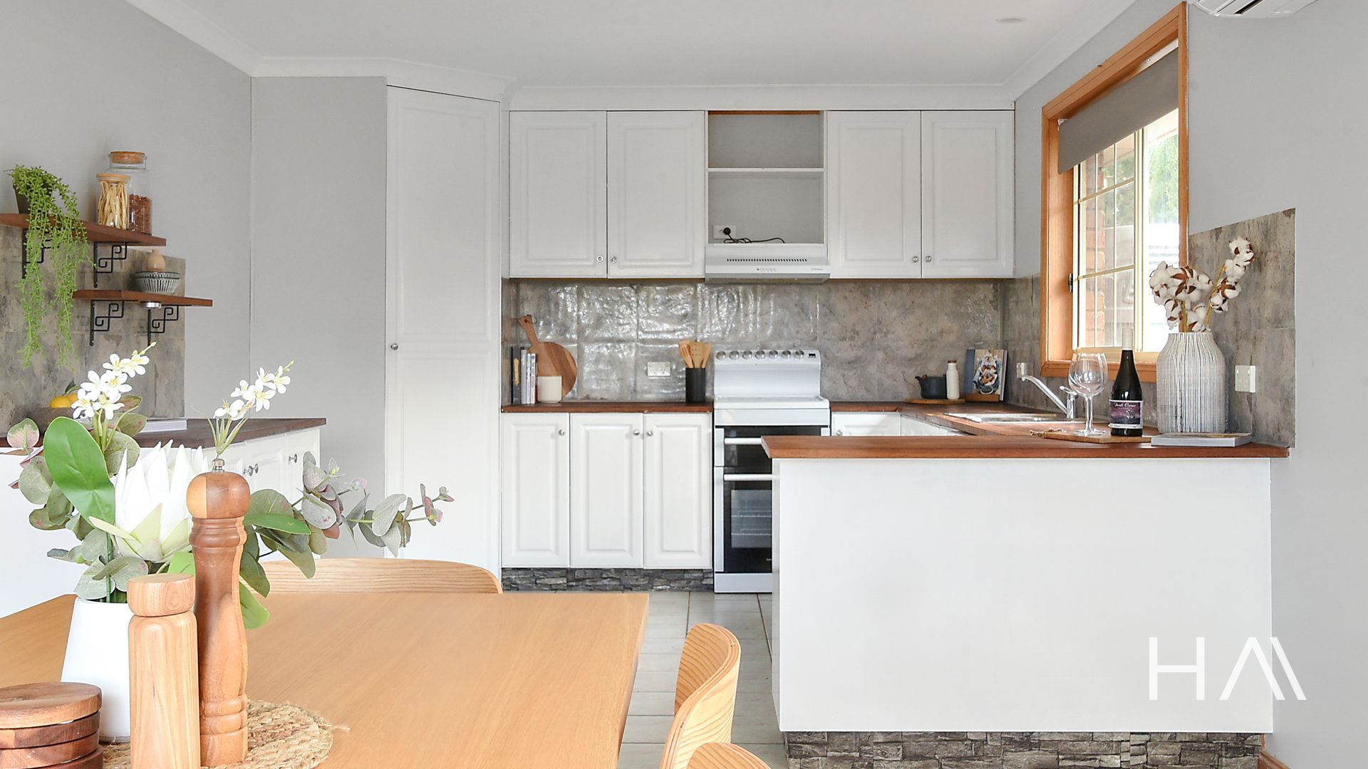 The living room is generously sized and filled with natural light, while the large kitchen boasts ample bench space and a separate dining area equipped with air conditioning for year-round comfort.