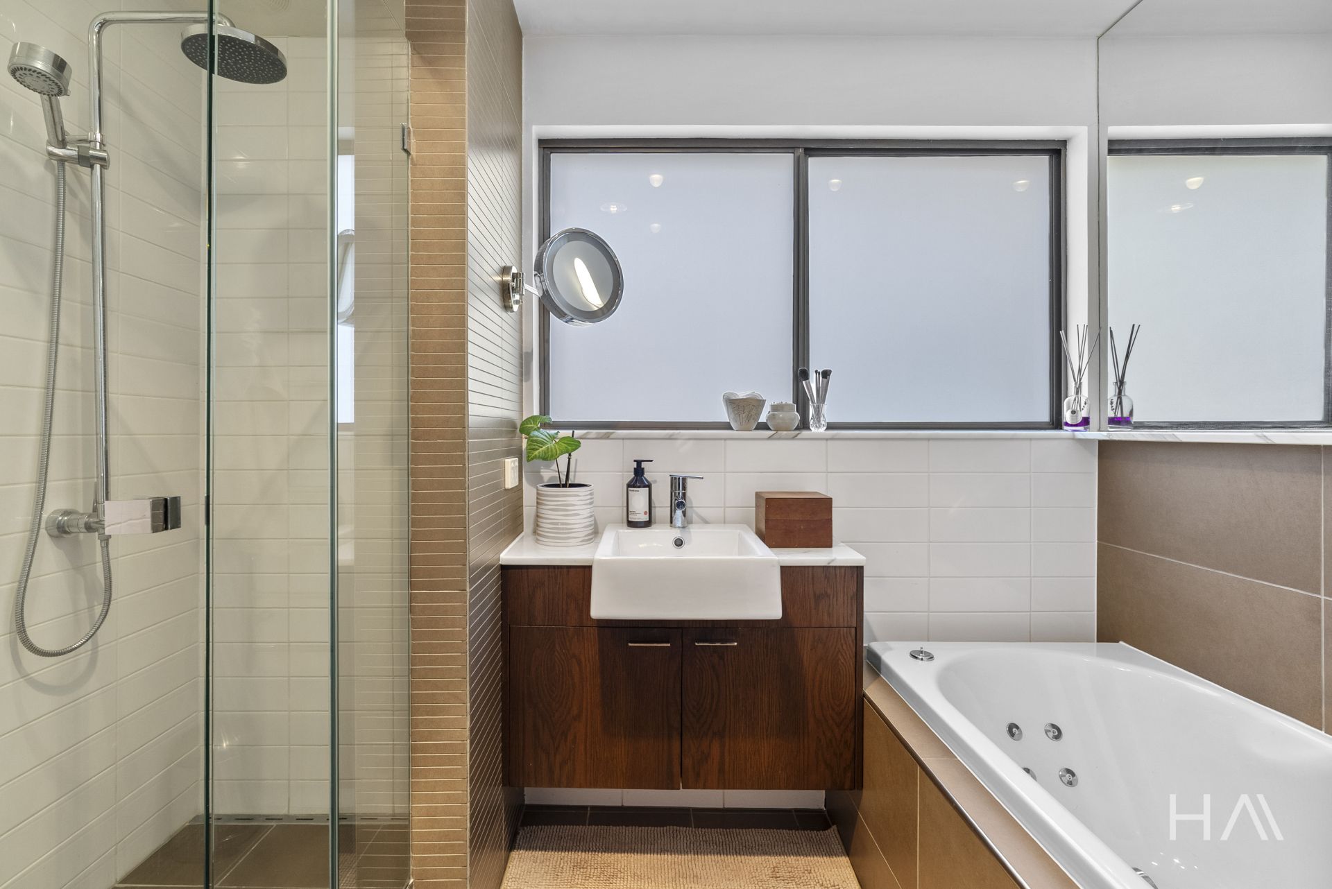 Accommodation spans two levels, with flexibility built in. The master suite is a retreat of its own - complete with a generous ensuite, dressing space, and sliding door access to a private courtyard where the gardens come alive year-round. Upstairs, one bedroom is currently enjoyed as an oversized walk-in robe, but could easily be returned to a traditional bedroom. Another bedroom with built-ins sits alongside, making the upper level perfect for family living. On the lower level, independence is assured with a private guest suite featuring its own ensuite, lounge, and walk-in robe.