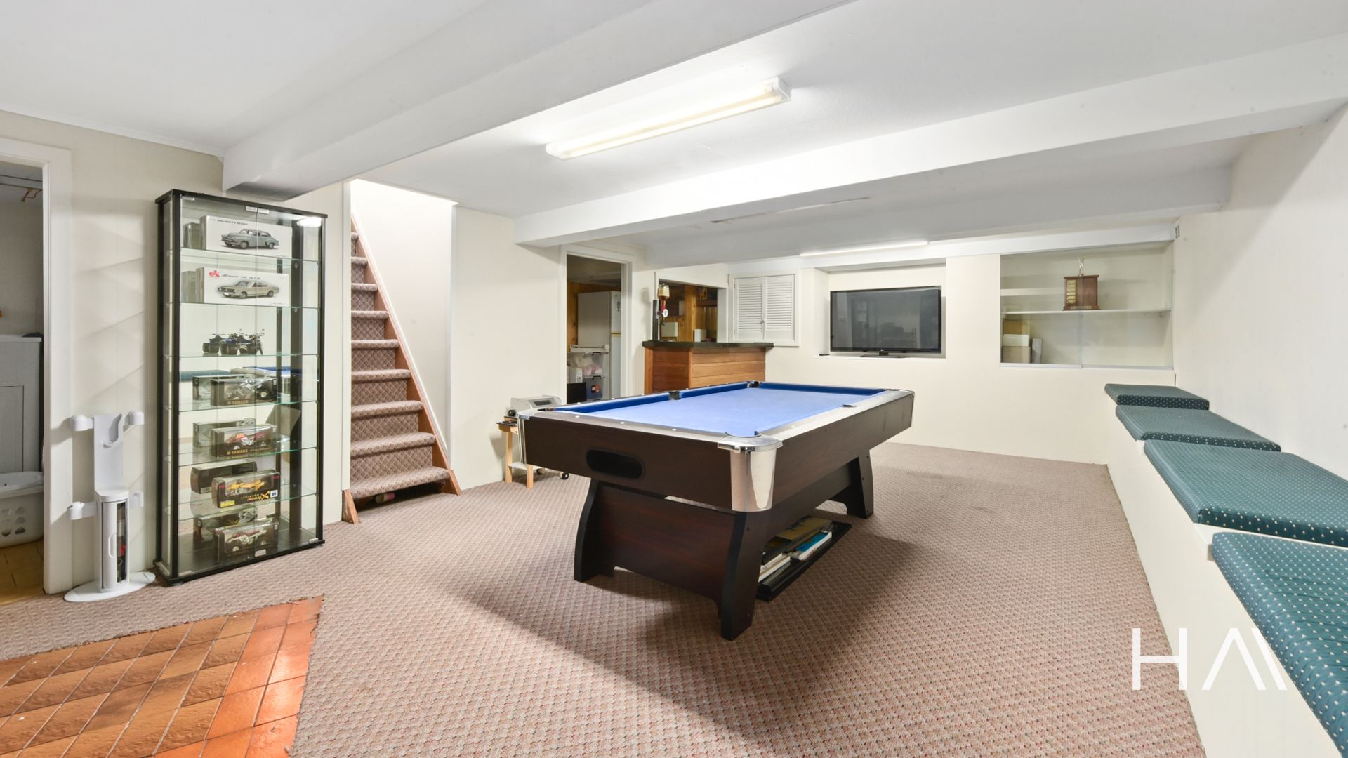 Downstairs, a generous rumpus room with internal access from the garage provides exceptional versatility. This level also includes the laundry, a bar area, extensive storage options, and access to additional under-house storage.