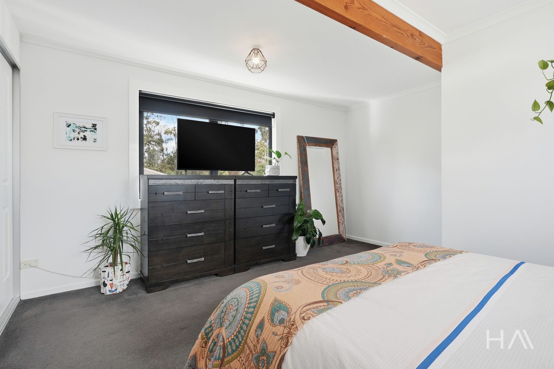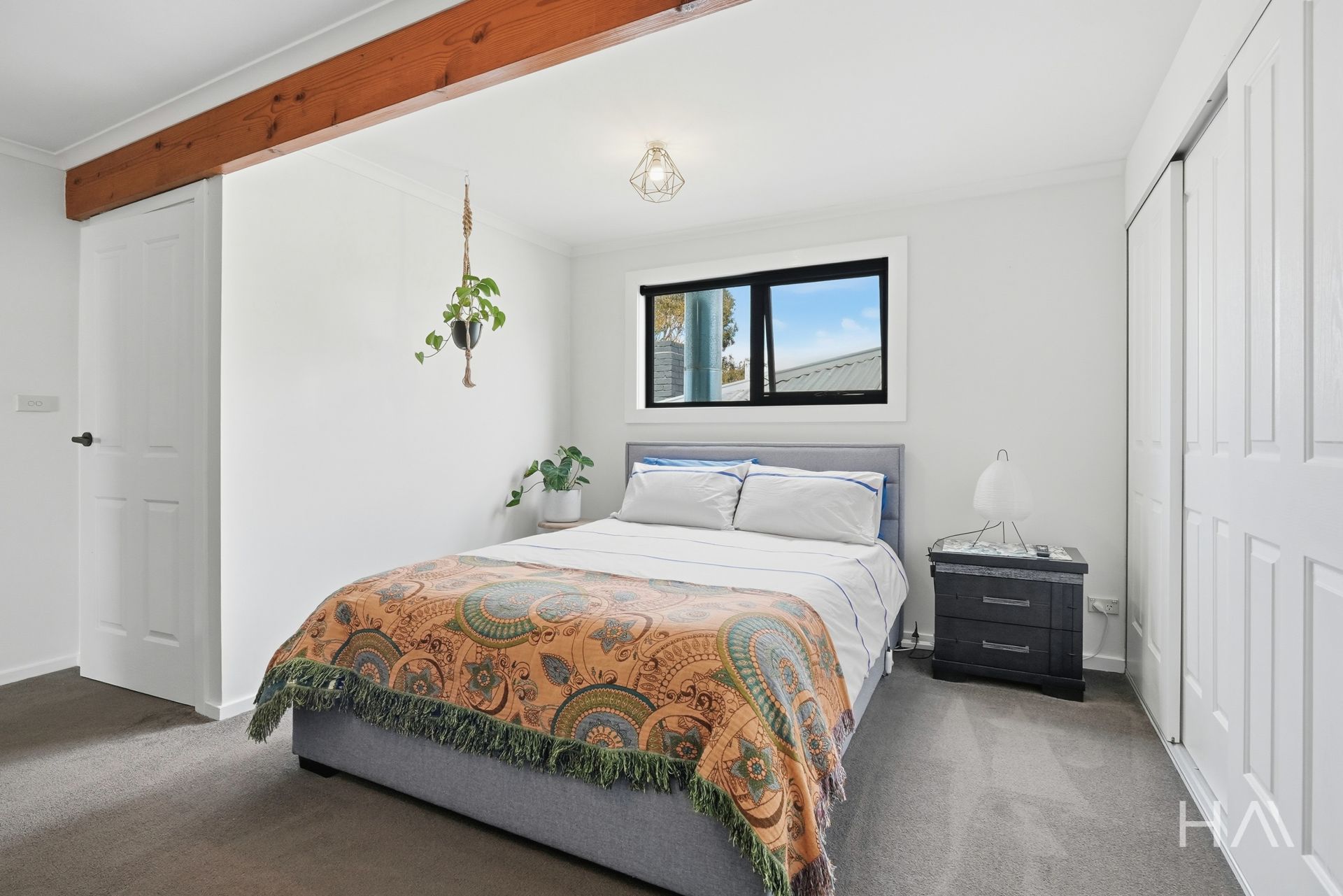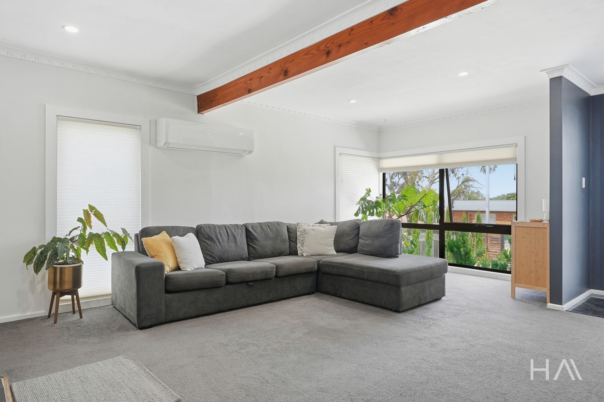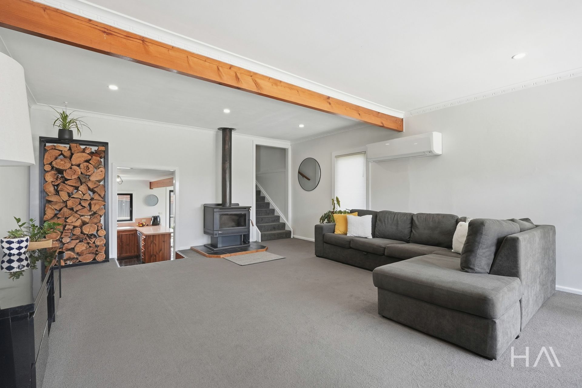 Set across approximately two and a half levels, the layout creates natural separation while remaining easy to live in day to day. The main living area sits centrally within the home, warmed by a wood heater and complemented by reverse-cycle air conditioning for year-round comfort. Double-glazed windows enhance insulation and contribute to everyday liveability.