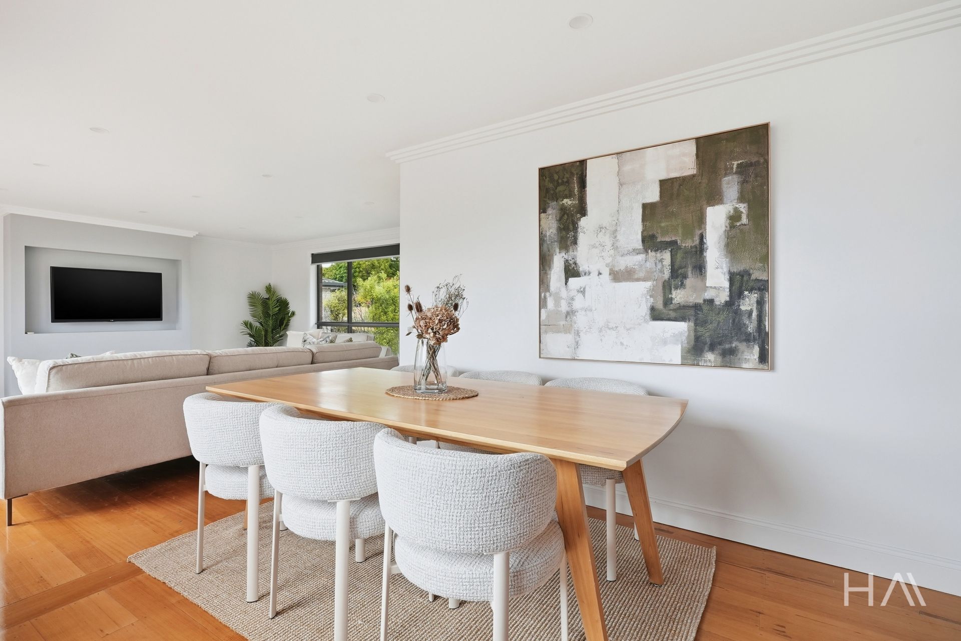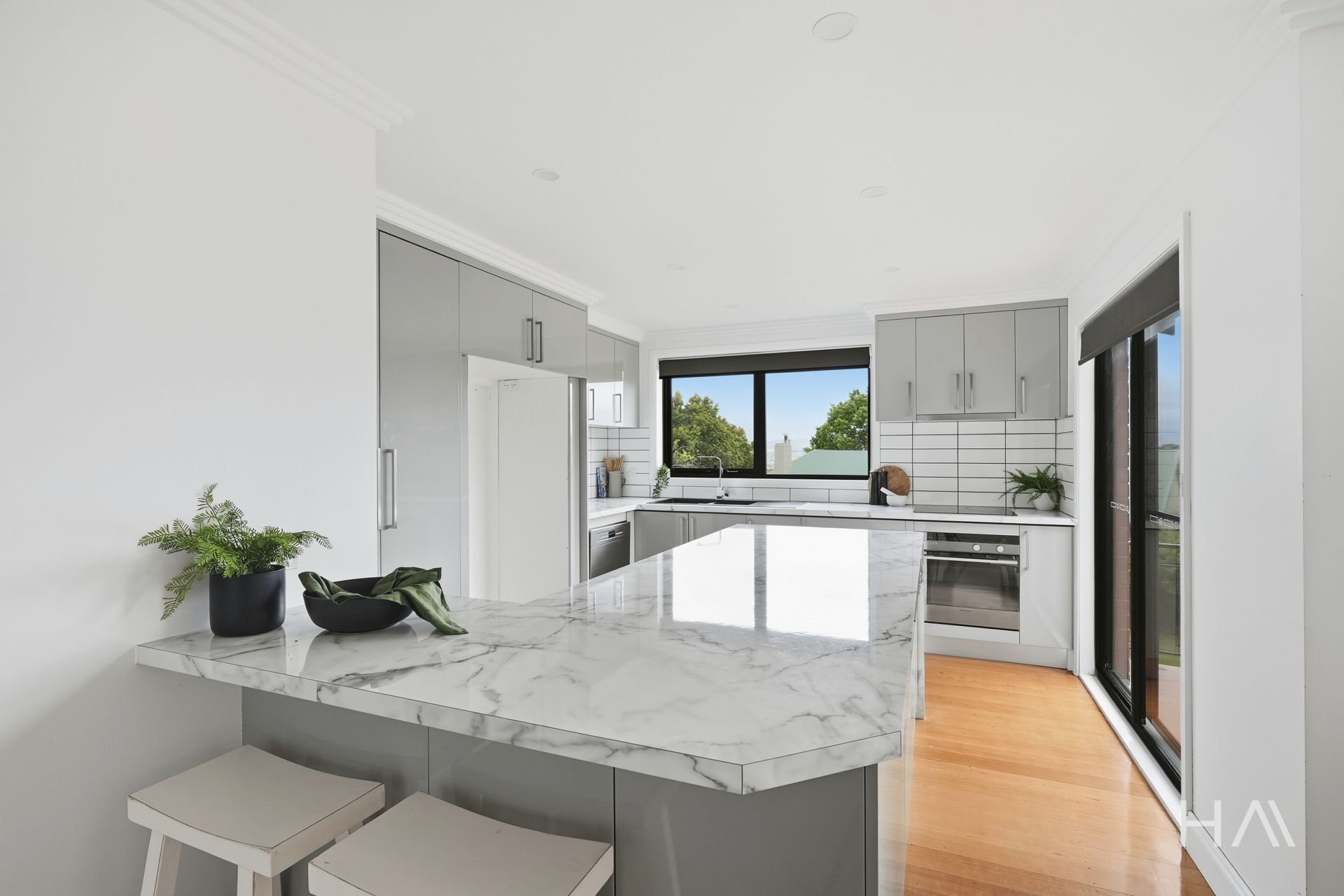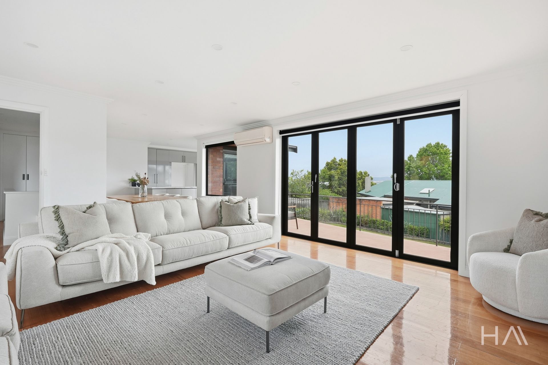 From the moment you step inside, the home feels light, bright and immaculately maintained. The kitchen is the clear heart of the home, modern, crisp and generously sized, designed for both everyday living and entertaining. Sliding doors open directly onto the balcony, creating a seamless indoor–outdoor connection. The layout continues effortlessly through the dining area and into the spacious living room, where double doors again open to the balcony, capturing elevated mountain views.