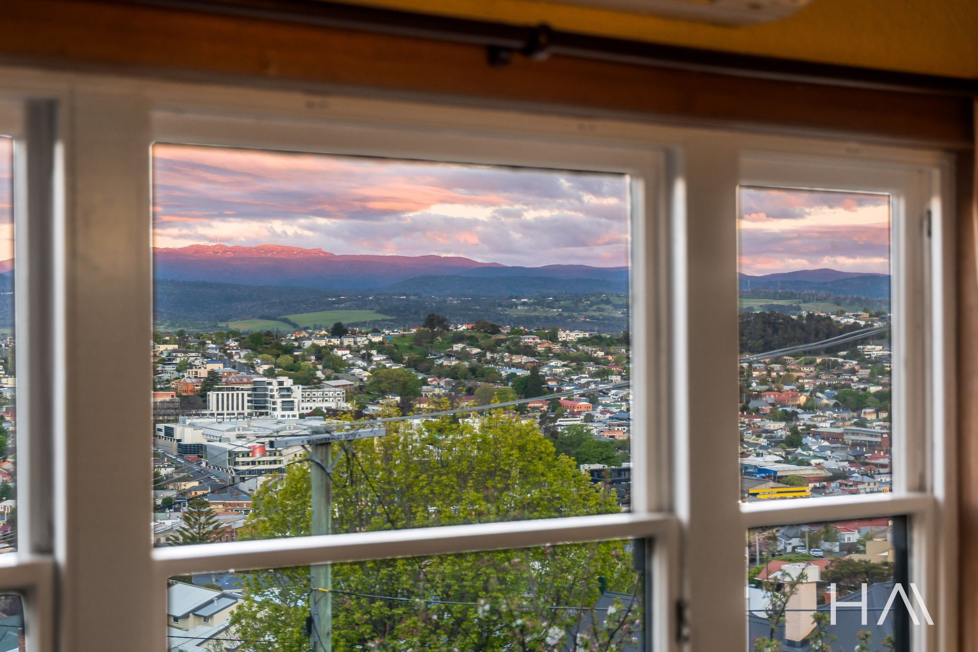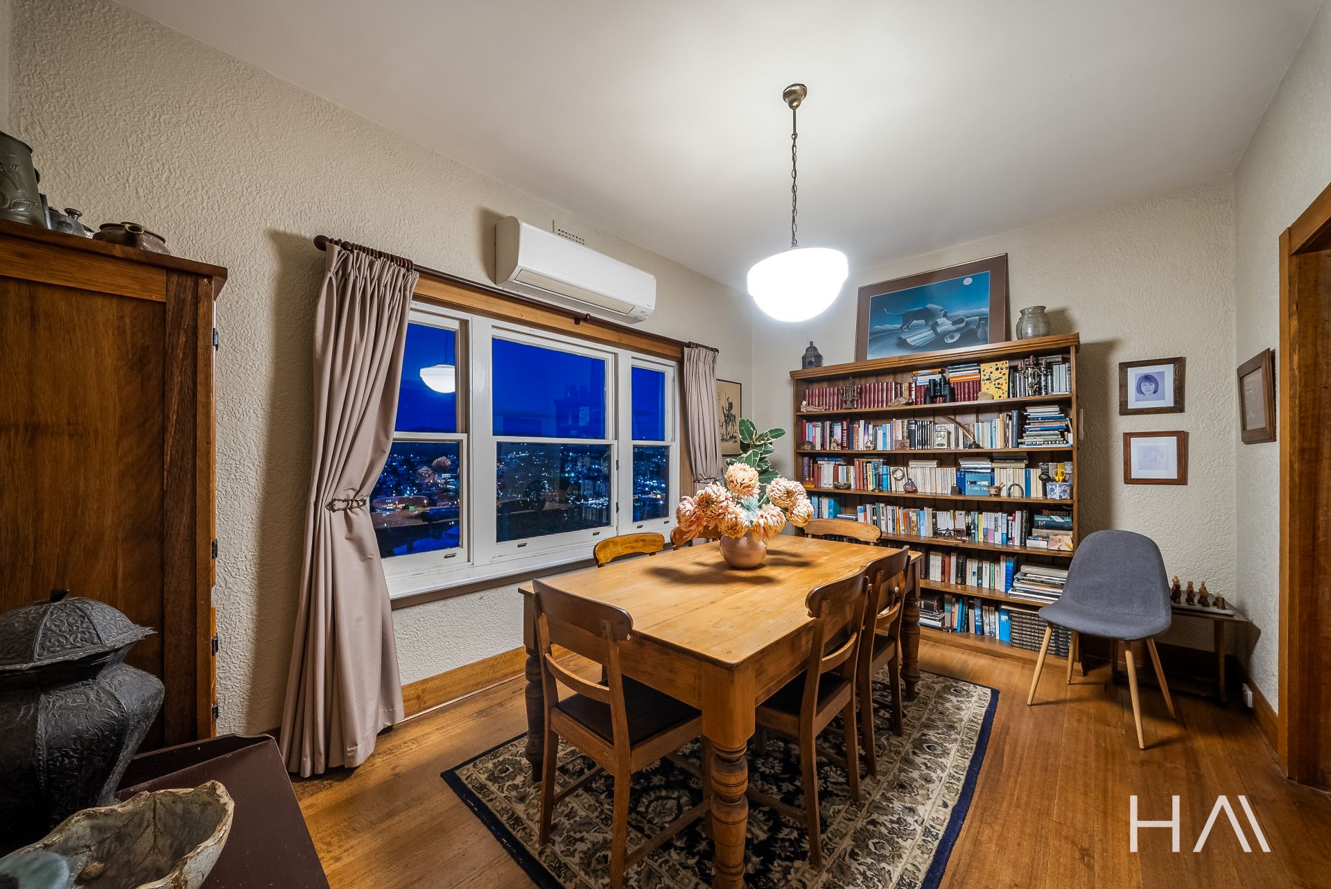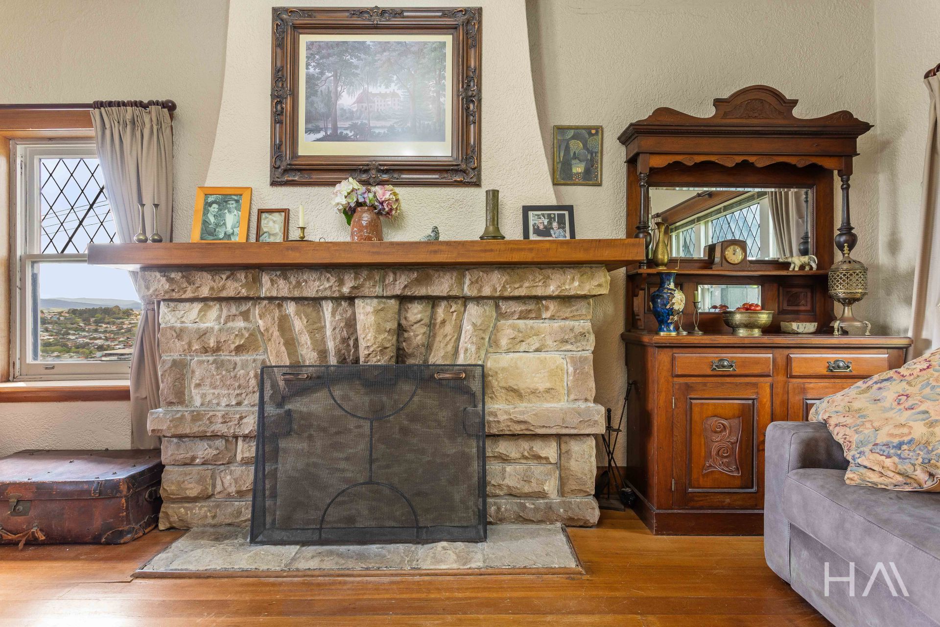 From the moment you enter, you'll be captivated by the home's original features. The art-deco light fittings stunning! A sun-drenched dining and sun-room frame sweeping views over the city to the mountains, and a cosy lounge is complete with a beautiful sandstone fireplace, that promises warmth and ambience.