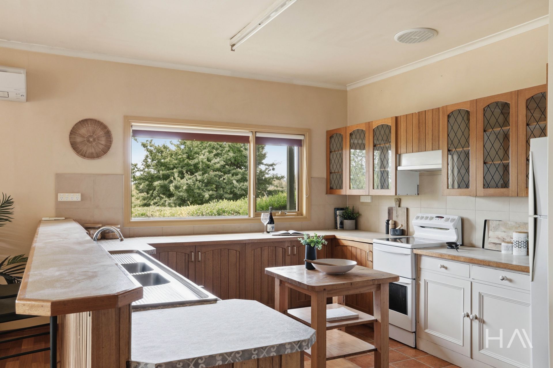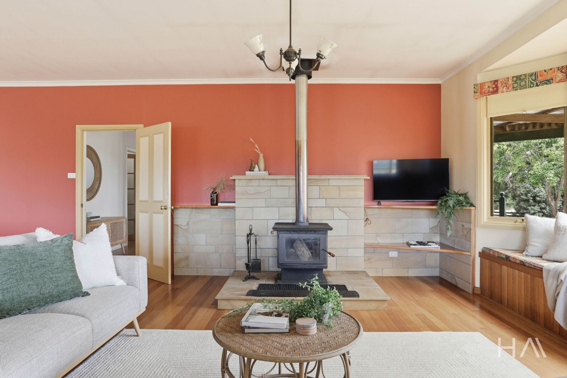 But it’s the heart of the home where the story really lives. The open plan kitchen, dining and living space brings everyone together. The kitchen is large, functional and easy to move through, complete with timber cabinetry, oven, cooktop and rangehood, and looks directly across to the dining and living areas. A wood fire stands proudly in the centre of the room, as it should in a lifestyle home like this - quietly anchoring the space through winter evenings and slow country nights.