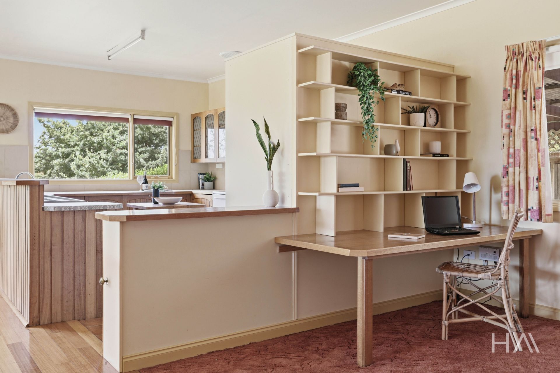 Tucked into this same zone is a beautiful study nook with timber shelving, a place for homework, emails, recipes or simply sitting with a coffee while the fire crackles nearby.