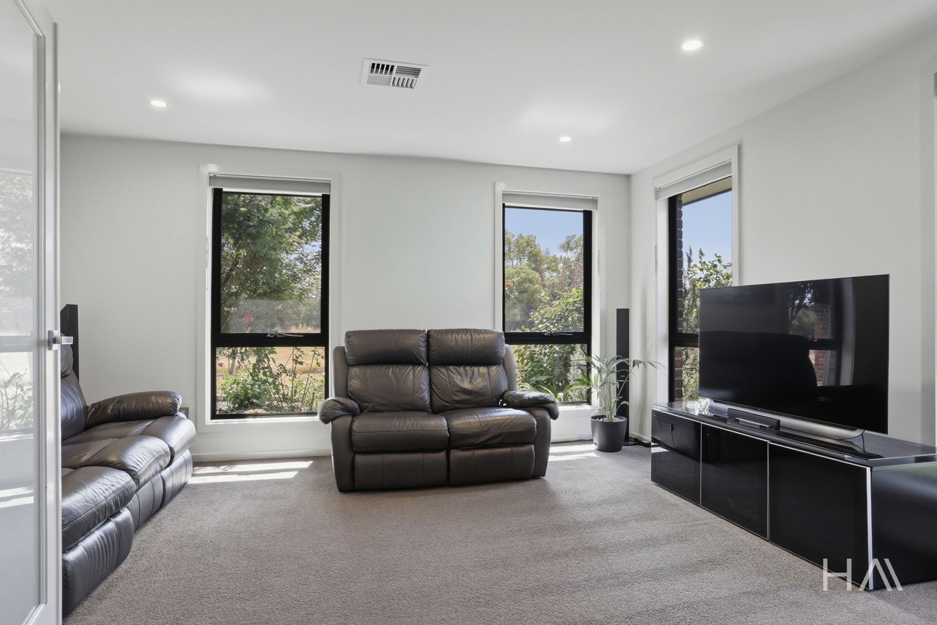 Constructed in 2012 and thoughtfully designed for family life, the home opens into a light filled, open plan kitchen, living and dining space that becomes the natural heart of the house. Whether it's busy mornings or slow evenings by the fire, the layout simply works. A separate media room offers a retreat away from the main living zone, ideal for movie nights or a quiet escape at the end of the day.