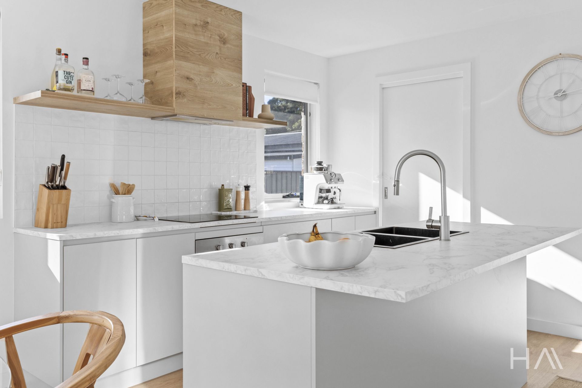 There's an immediate sense of calm as you step inside, where minimalistic design is paired with warm, natural light that fills every corner. The open plan living zone acts as the welcoming heart of the home, creating a space that's easy to furnish, easy to enjoy and naturally brings everyone together. The kitchen is refined yet practical, appointed with an electric cooktop, oven, rangehood, dishwasher and a generous butler's pantry that keeps everyday living beautifully streamlined.