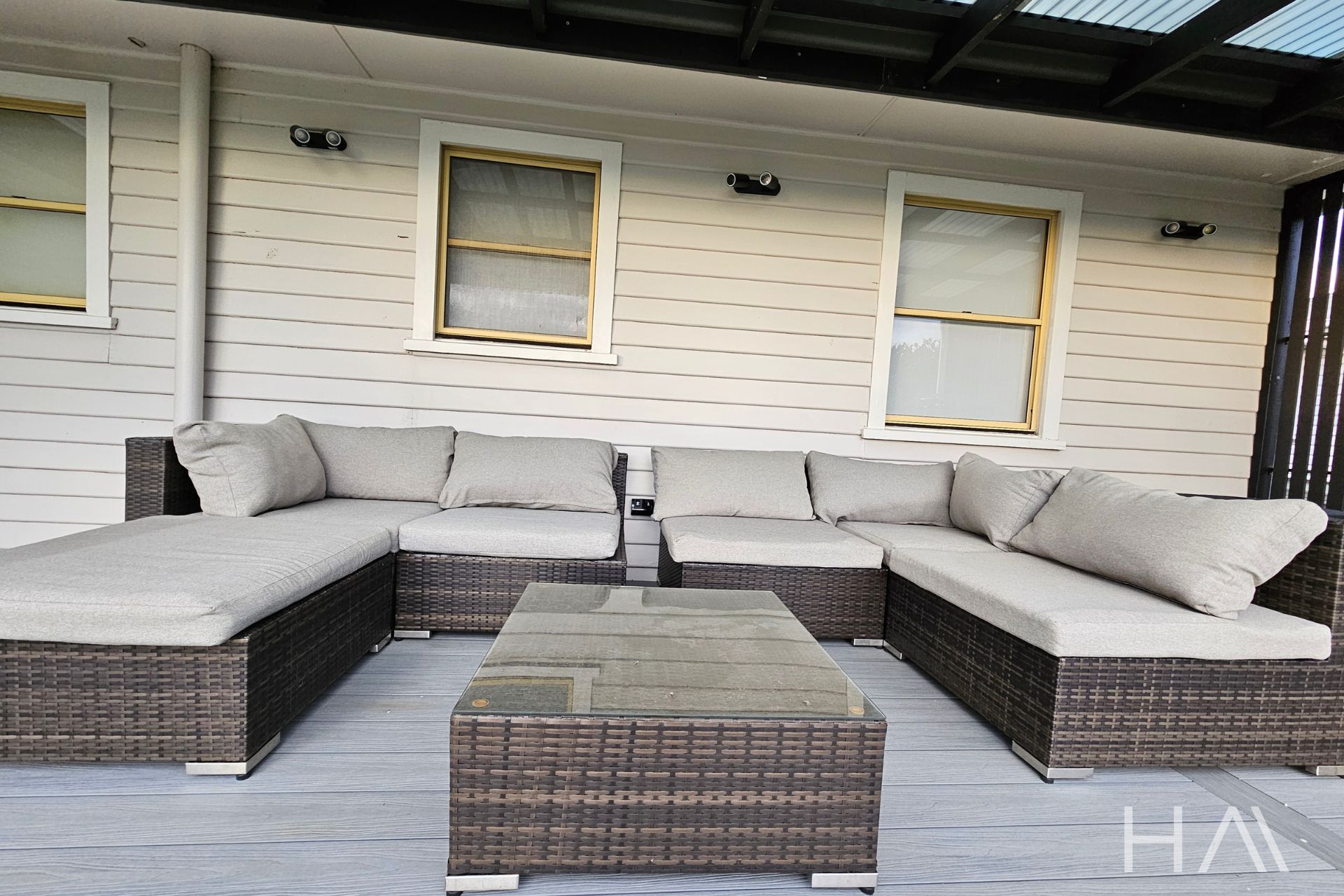 Outdoors, the home continues to impress, offering an inviting entertaining deck with built-in seating and a designated BBQ area, ideal for gatherings with family and friends. The private, secure, and generously sized yard includes a single car garage with an adjoining carport, a large storage shed, a garden shed, and a dedicated dog or animal run.