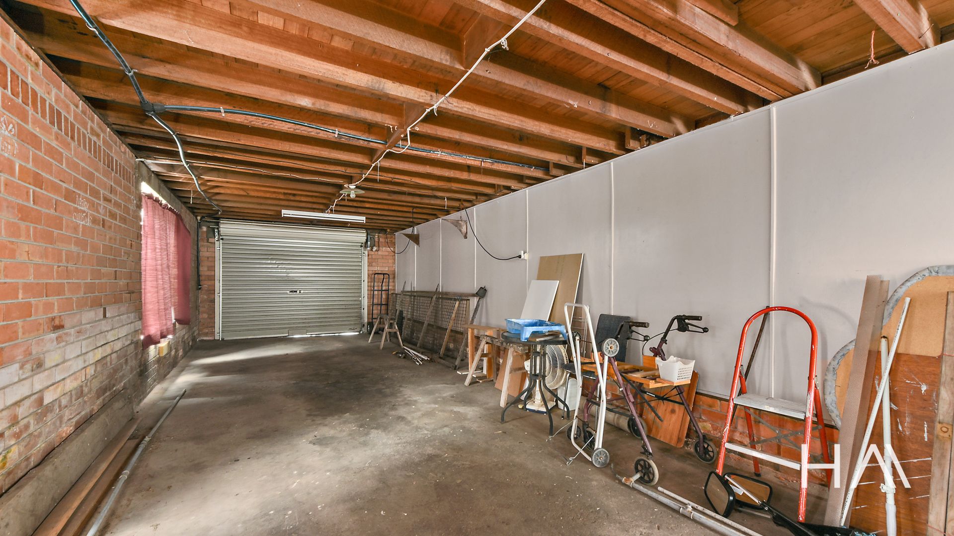 The lower level provides generous space and versatility, including a garage with two roller doors, laundry facilities and extensive storage with built-in shelving. This area offers excellent potential for use as a workshop, man cave, hobby space or additional storage, depending on the buyer's needs.